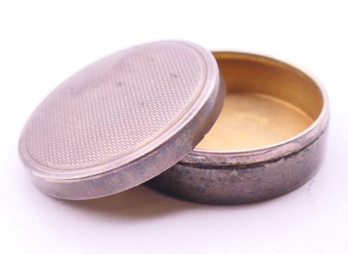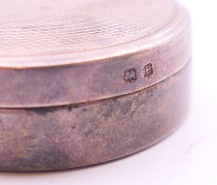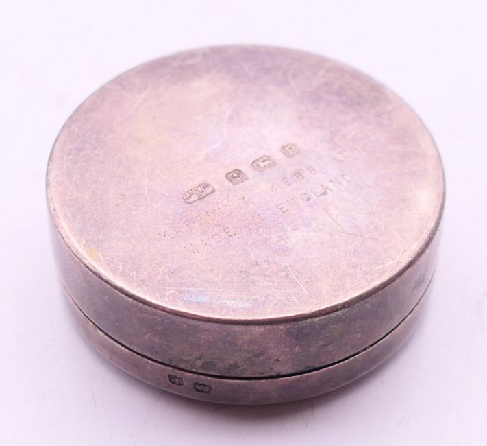 A Mappin & Webb silver pill box. 3.75 cm diameter.