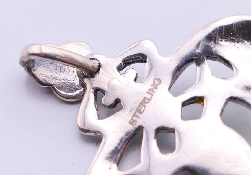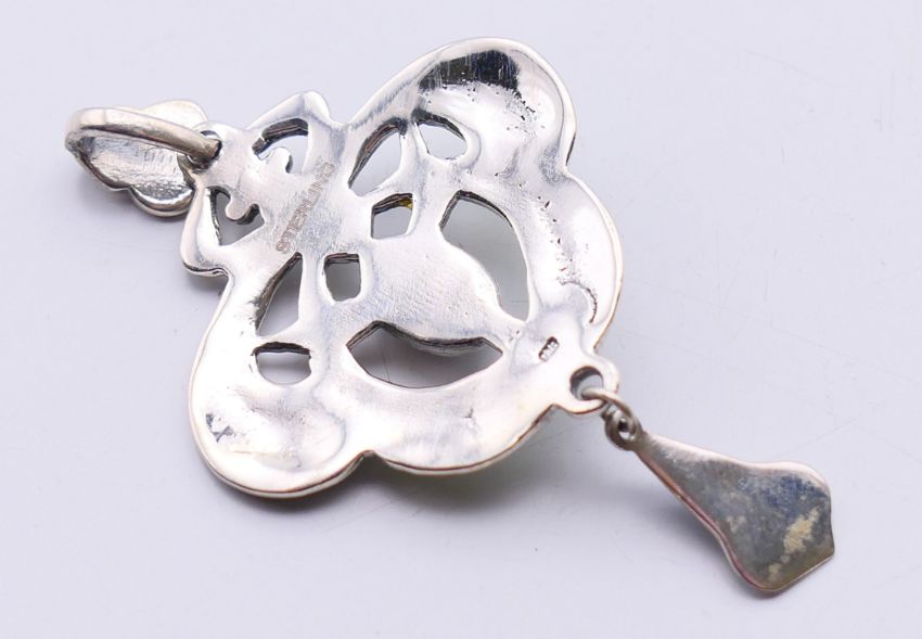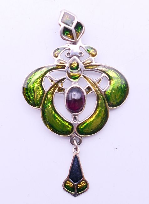 A silver green Art Nouveau-style pendant. 3.5 cm wide.