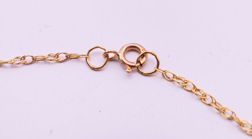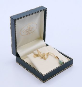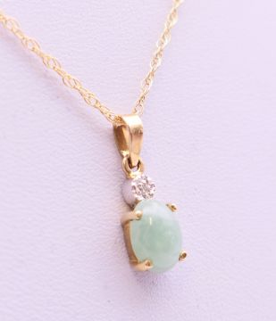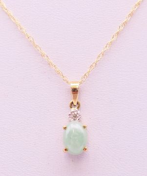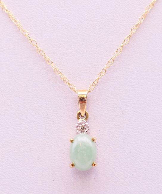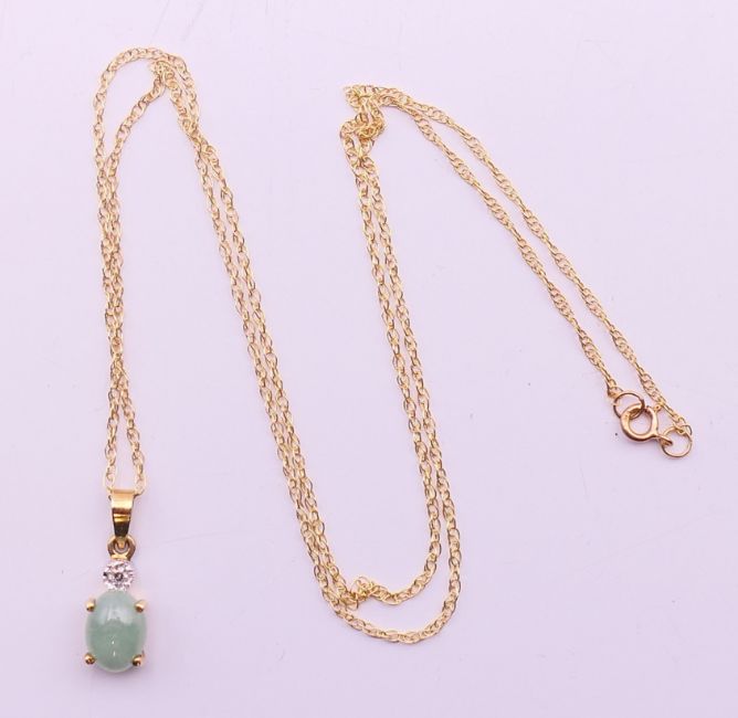A 9 ct gold jade and diamond pendant on chain. The pendant 1 cm high.