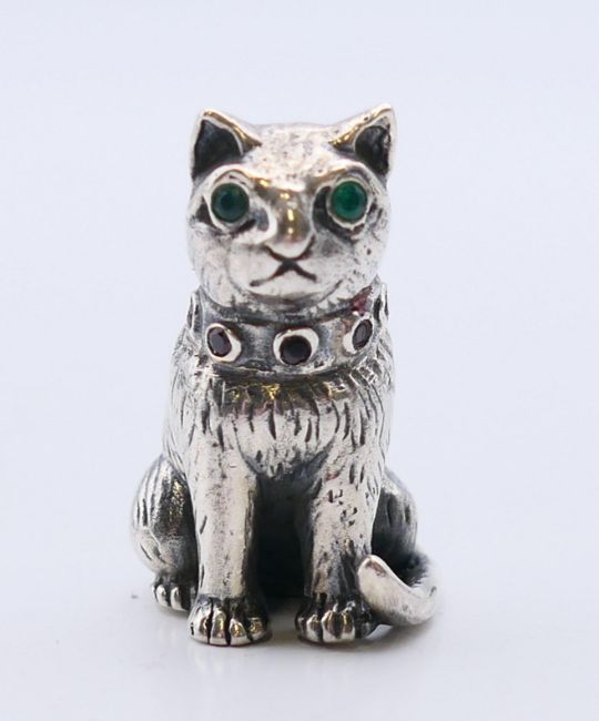 A silver cat pin cushion. 2.5 cm high.