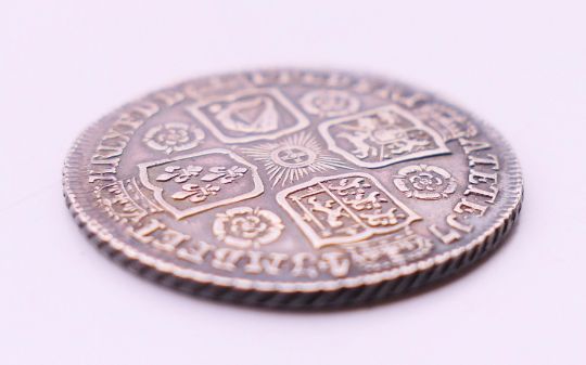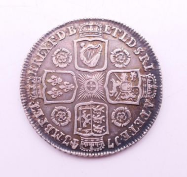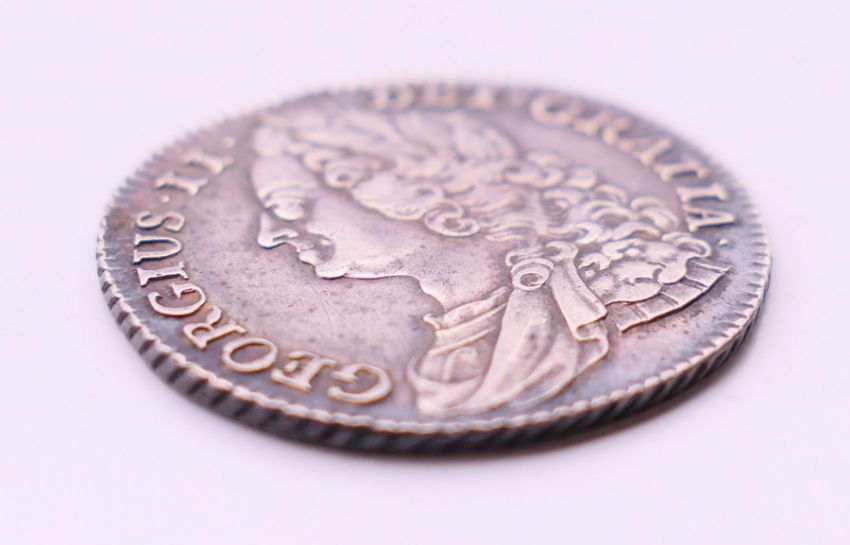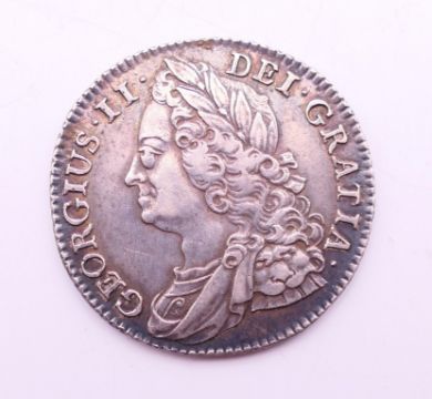 A George II silver coin. 2.5 cm diameter.