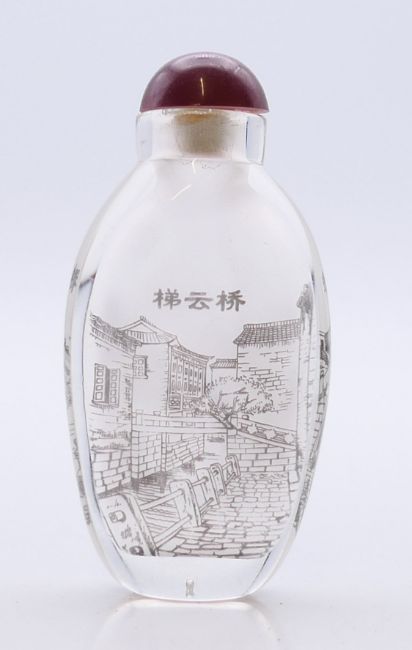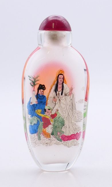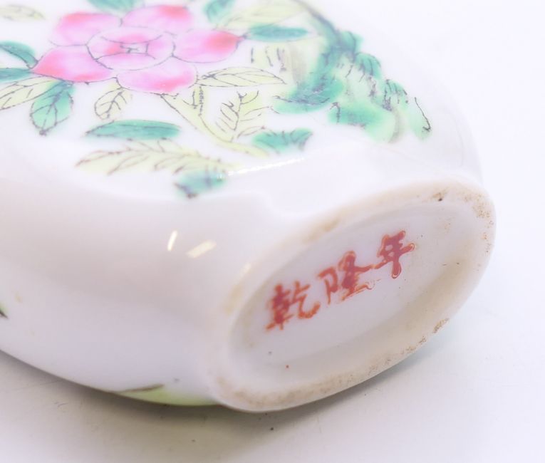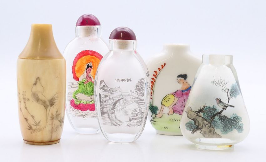 Five Chinese snuff bottles. The largest 8.5 cm high.