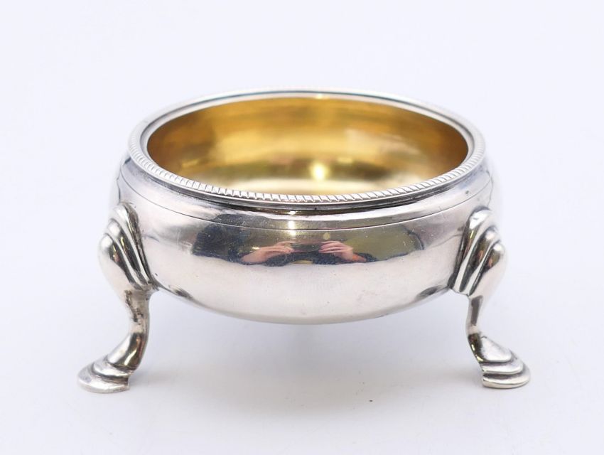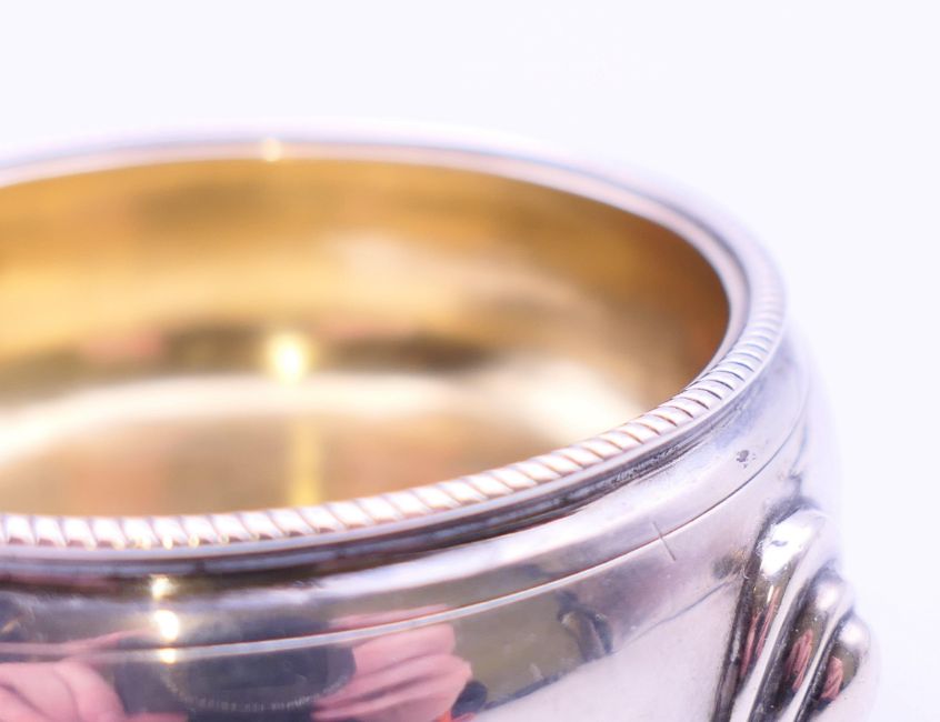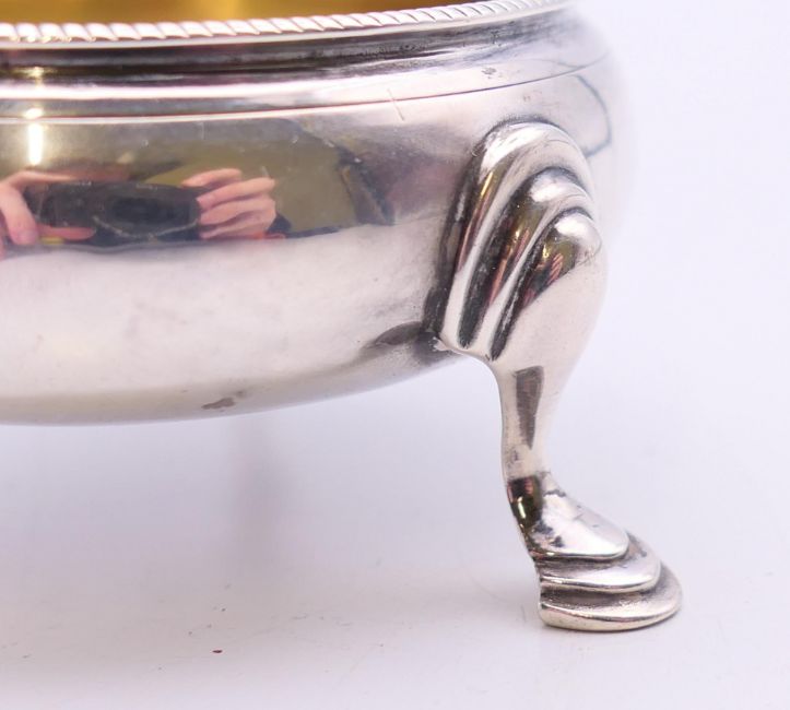 A pair of Georgian silver salts. 6 cm diameter. 85.1 grammes.