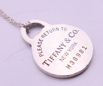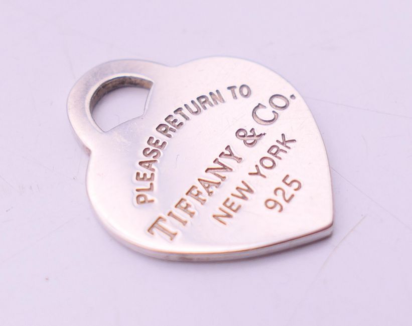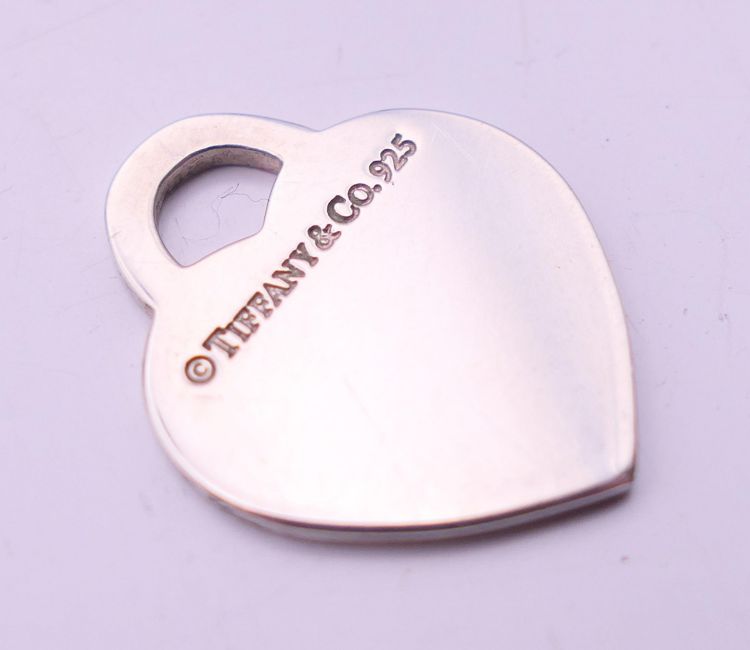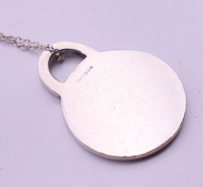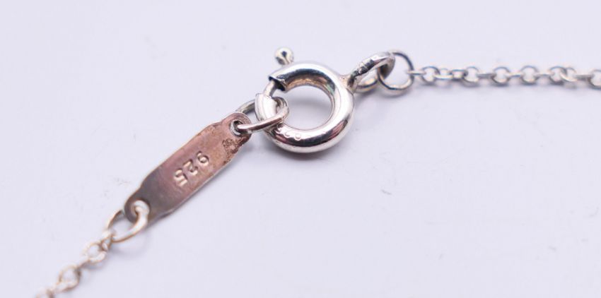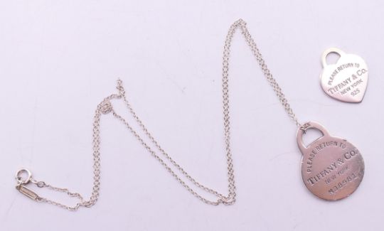 A Tiffany & Co silver necklace and two pendants in a Tiffany & Co box. The largest 2.5 cm high.