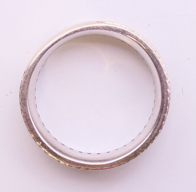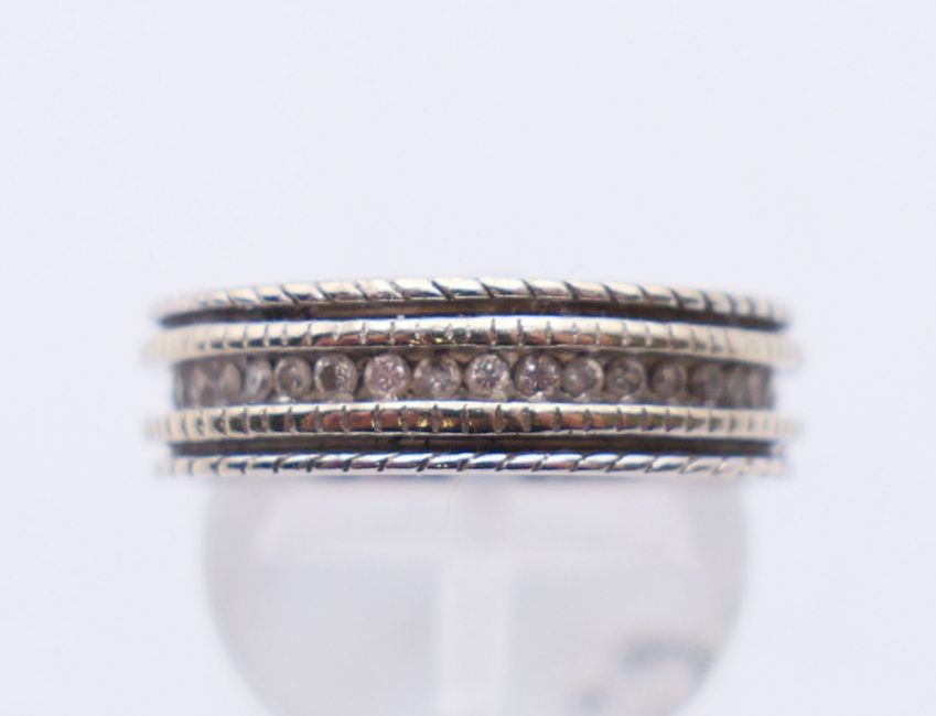 An 18 K white gold eternity ring. Ring size O.