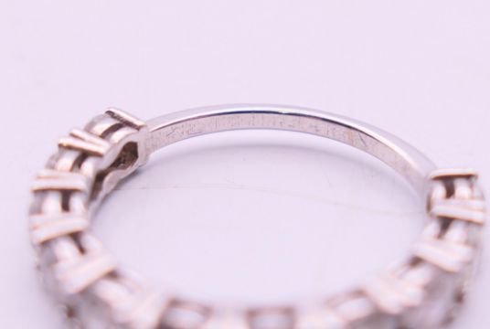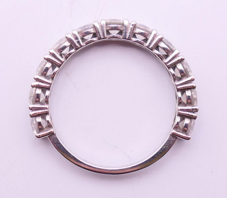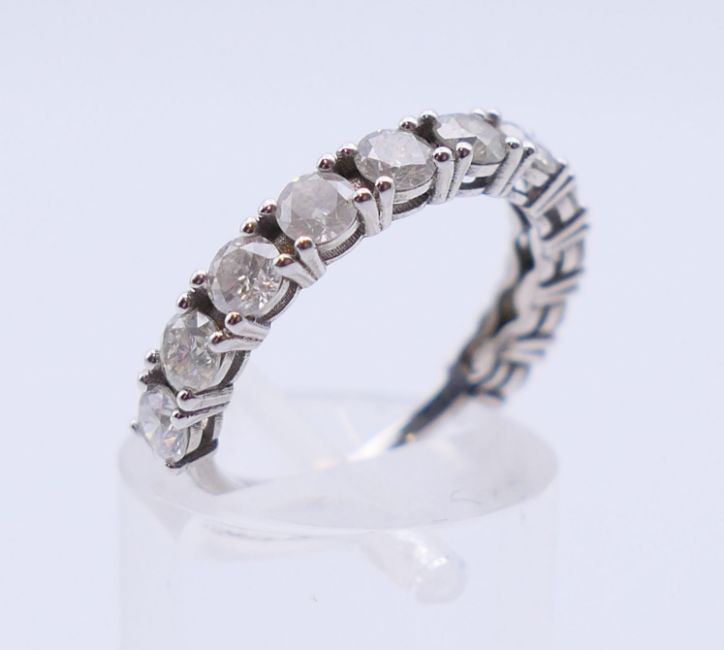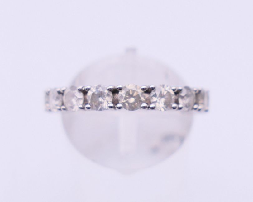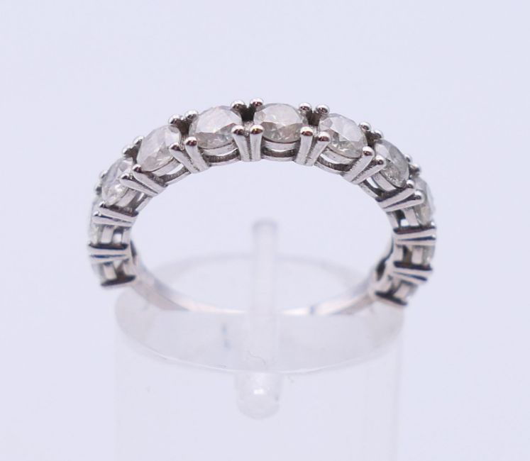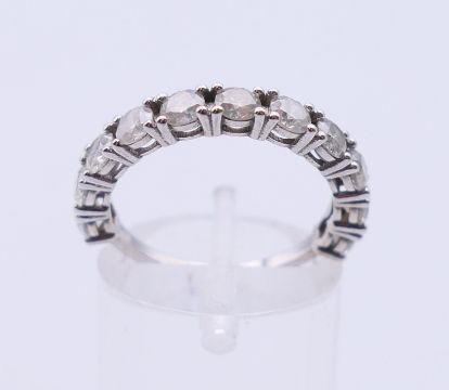 A 14 K white gold eleven-stone diamond ring (together with a gemological report). Ring size N.