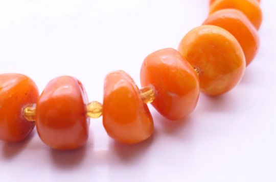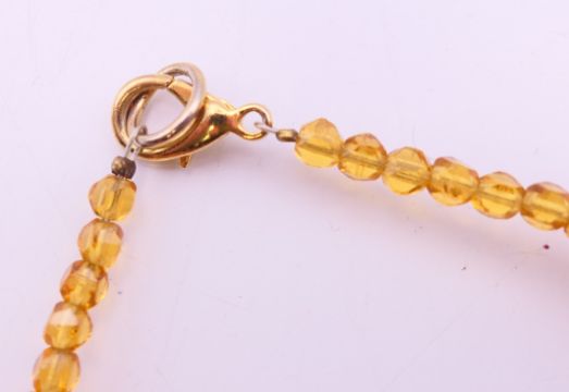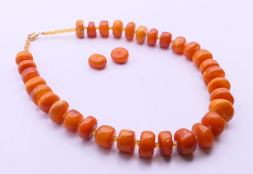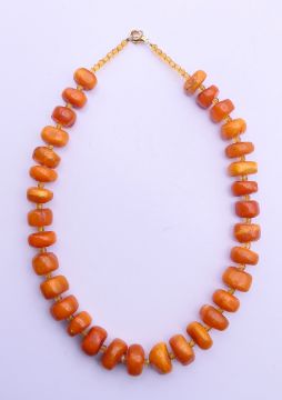 An amber bead necklace. 42 cm long.