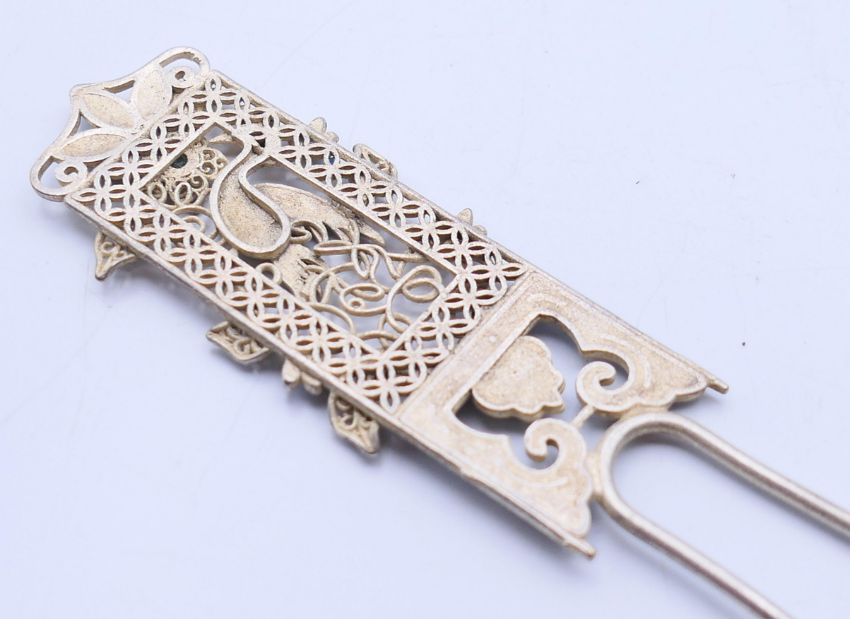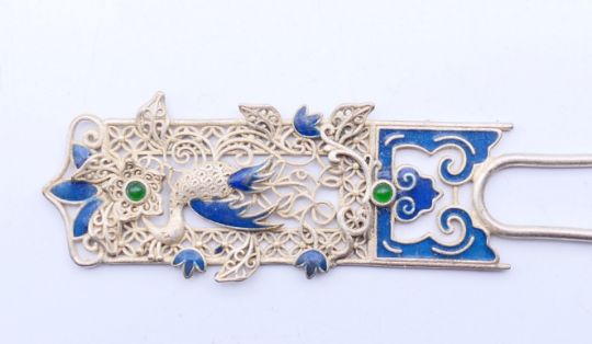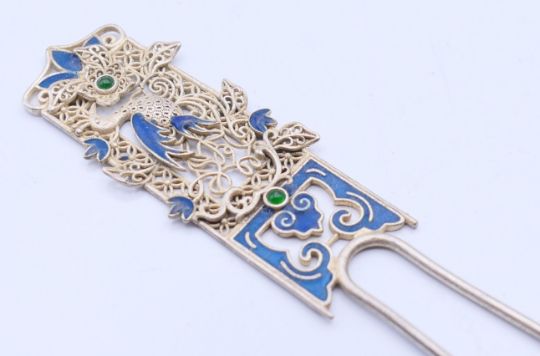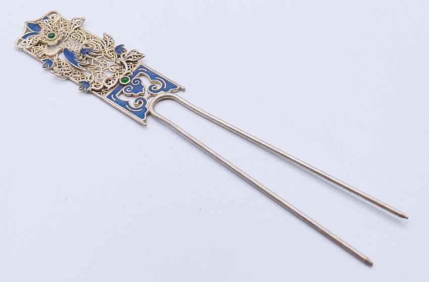 A Chinese enamelled hairpin. 16.5 cm high.