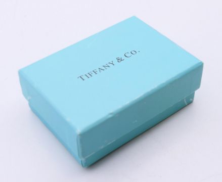 A boxed Tiffany & Co silver pendant on chain. The pendant 3.5 cm long.
