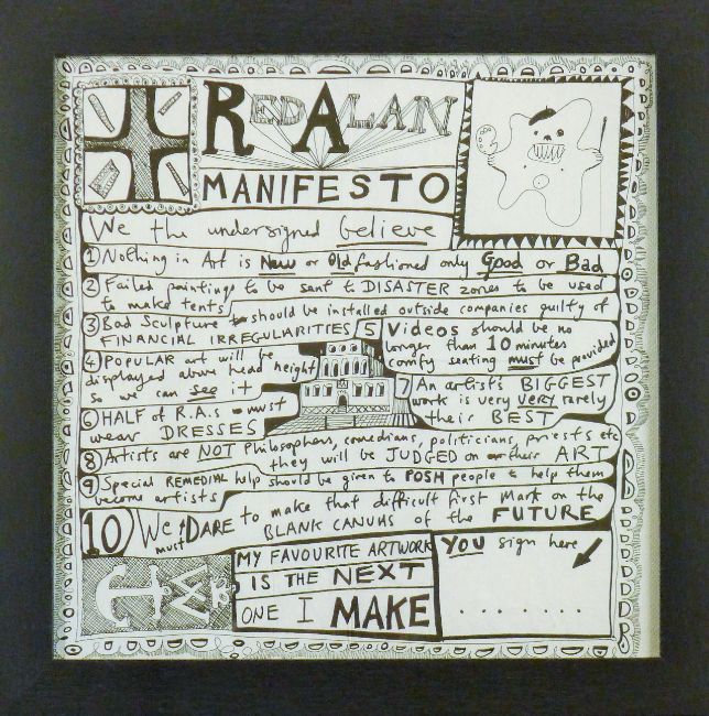 PERRY, SIR GRAYSON CBE RA (born 1960) British (AR), Red Alan Manifesto, a print, framed and glazed. 31 X 31 cm.