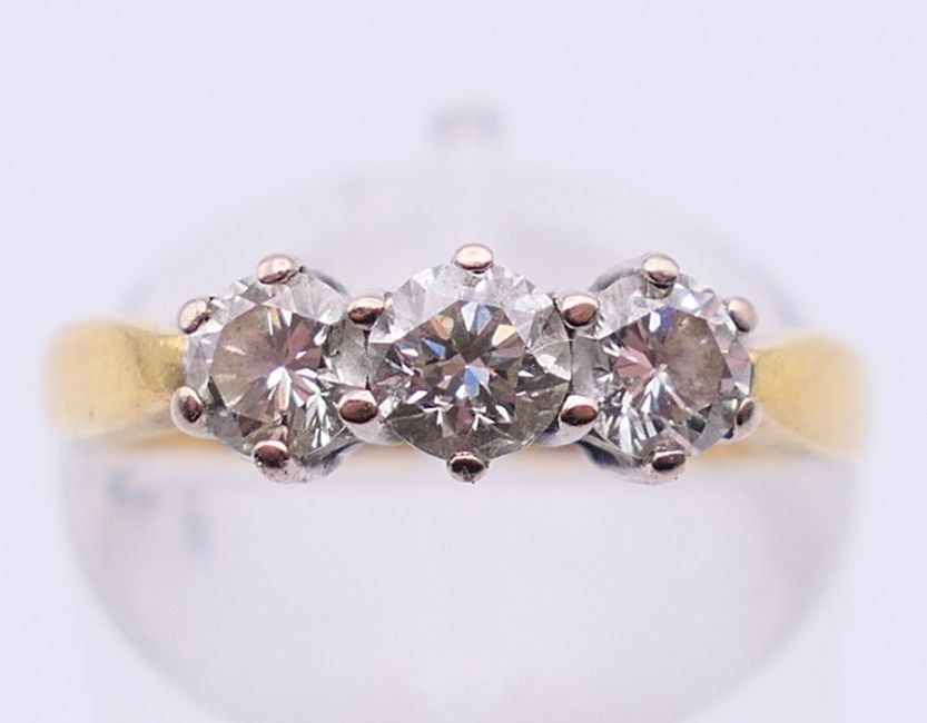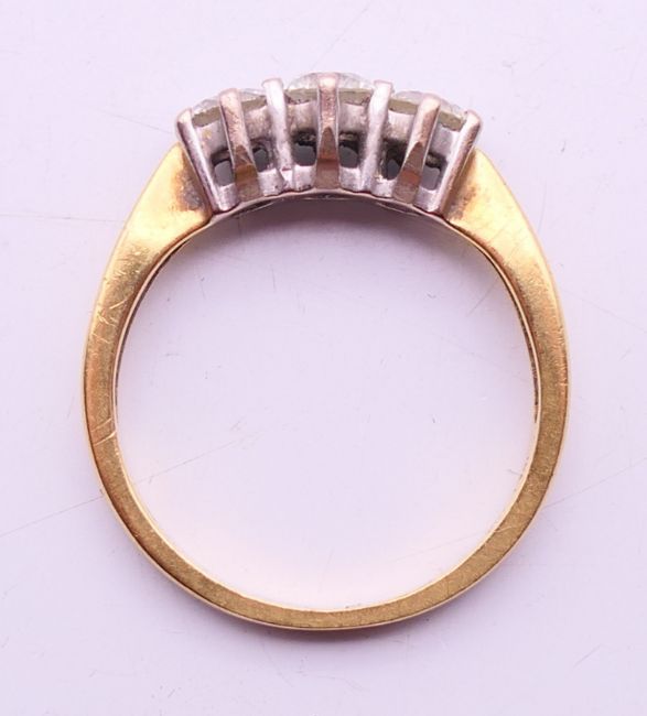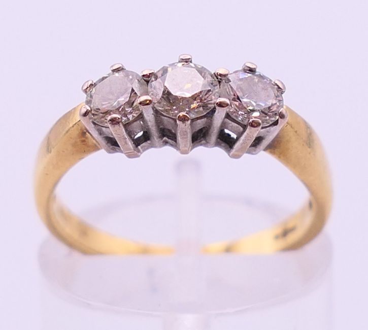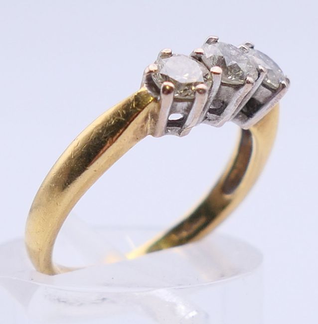 A diamond trilogy ring. Diamond weight approximately 0.60 ct. 3.3 grammes total weight. Ring size K/L.