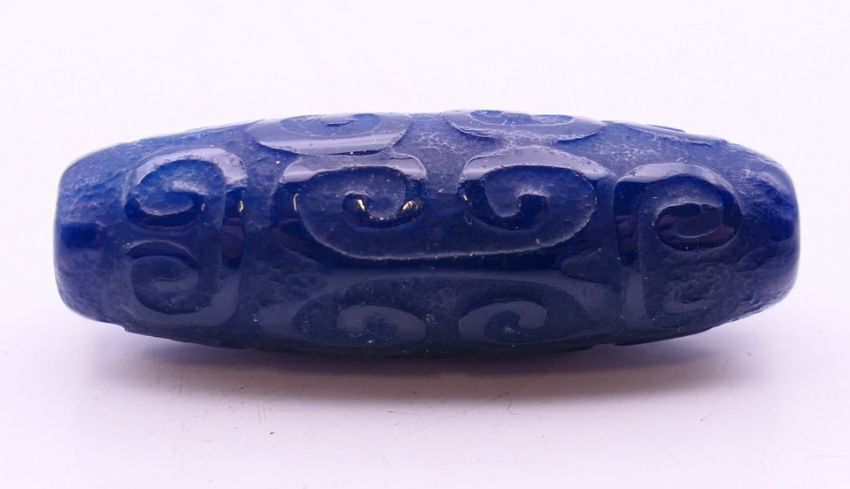 A Tibetan blue agate bead. 4 cm wide.