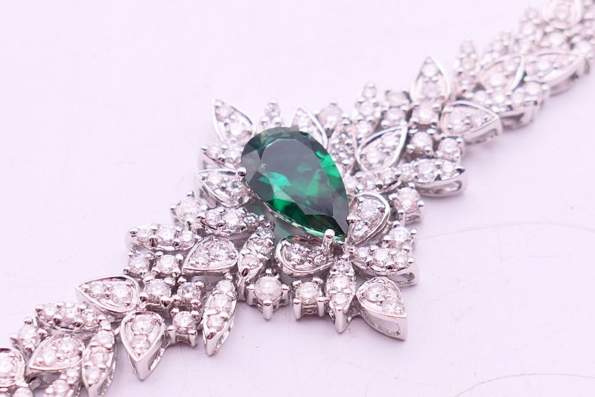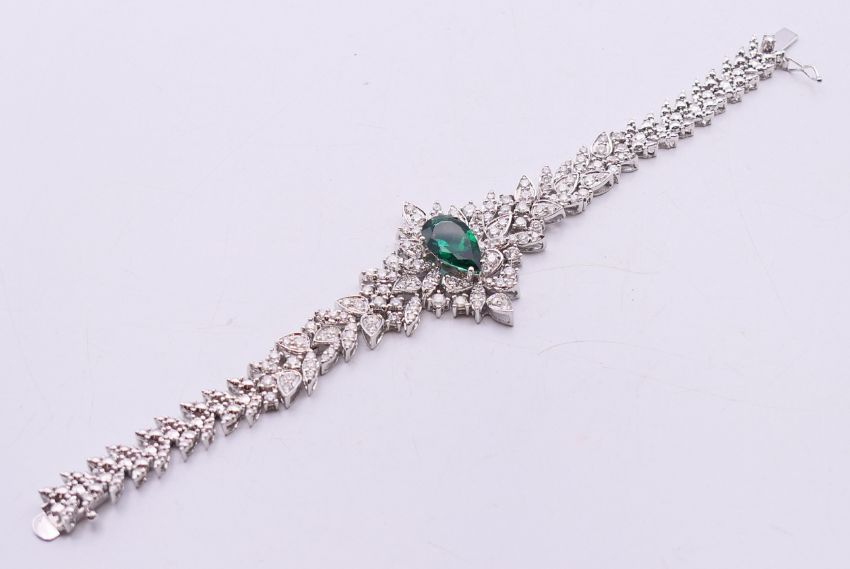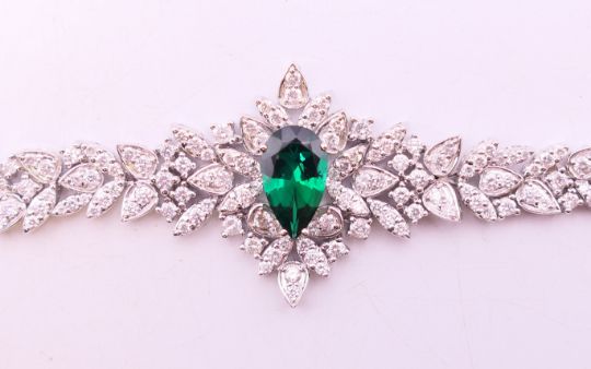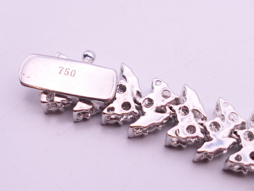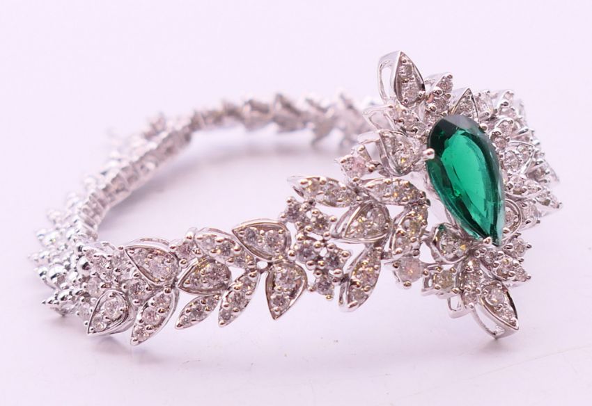 An 18 ct white gold, diamond and tourmaline bracelet. 16 cm long. 29.3 grammes total weight.