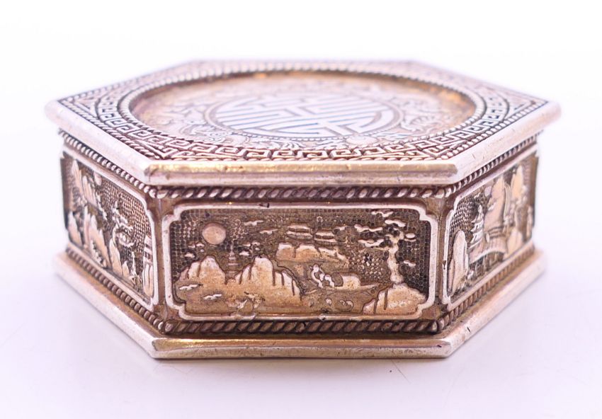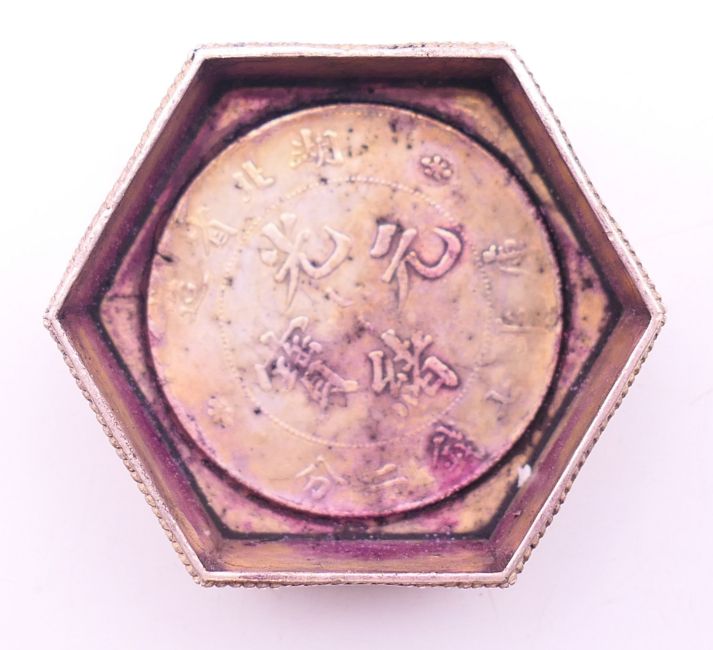 A Chinese coin box. 5 cm wide.
