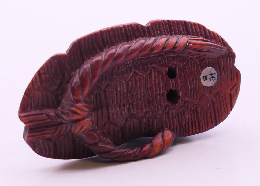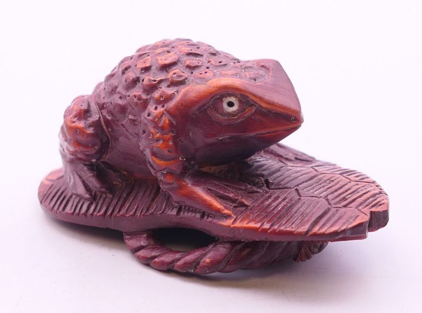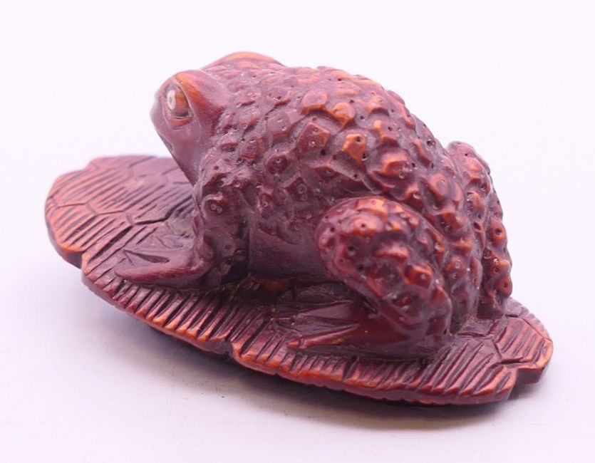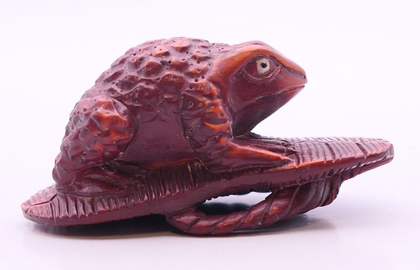 A netsuke formed as a frog. 5.5 cm wide.