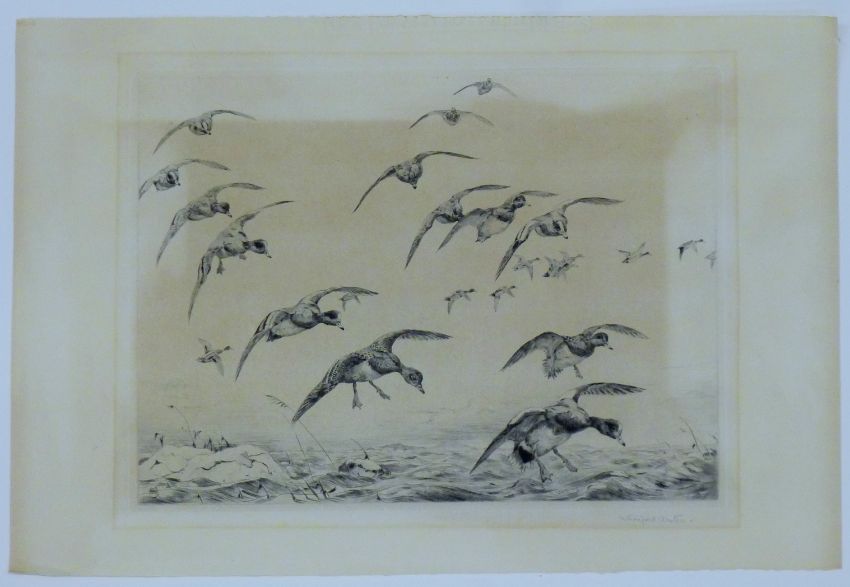 AUSTIN, WINIFRED (1876-1964) British (AR), Wigeon Coming into Land, etching, signed. 24 x 29 cm.