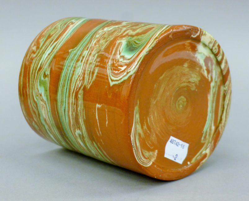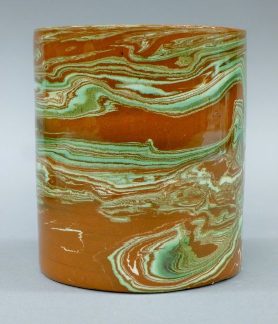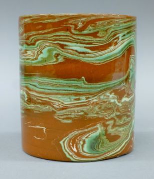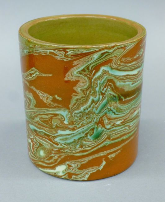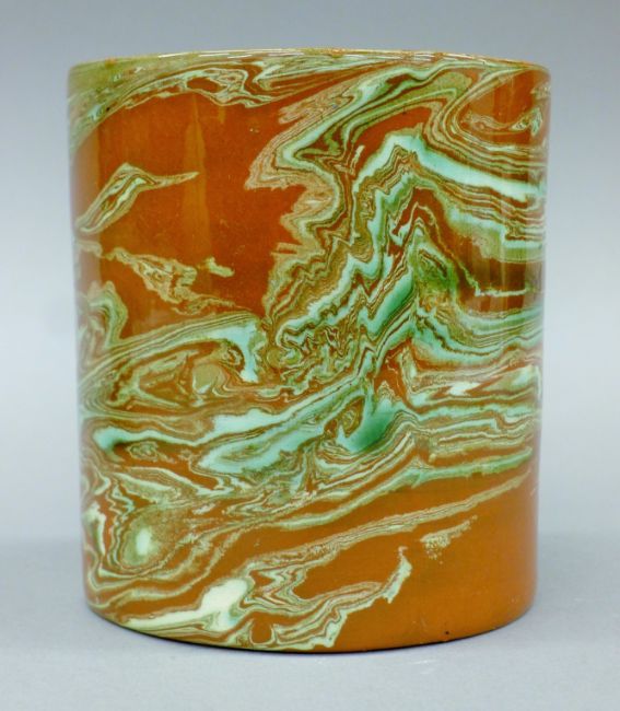 A Jiao Tai ware marble-glazed ceramic brush pot. 13.5 cm high.