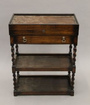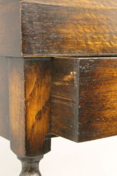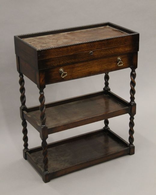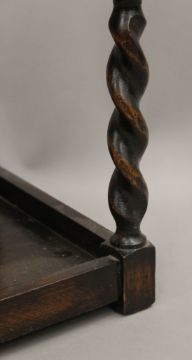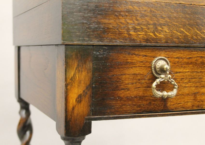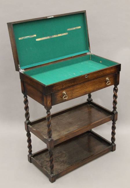 An early 20th century oak barley twist cutlery canteen table. 63.5 cm wide.