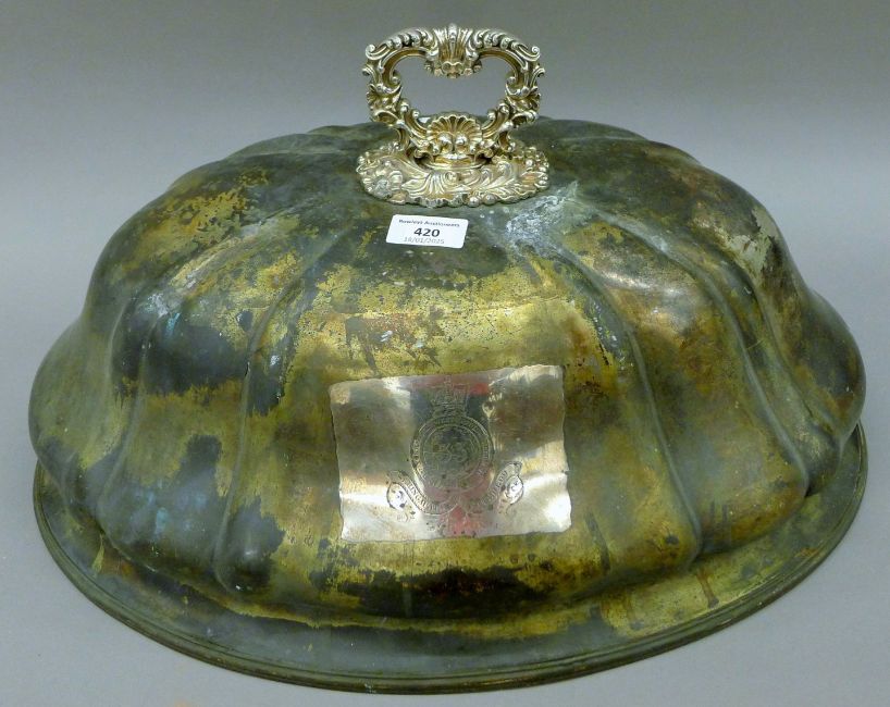 A meat cover engraved '1st Yorkshire West Riding Regiment, Waterloo'. 46 cm long.