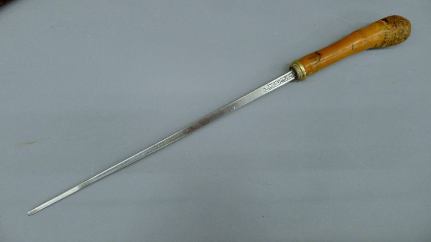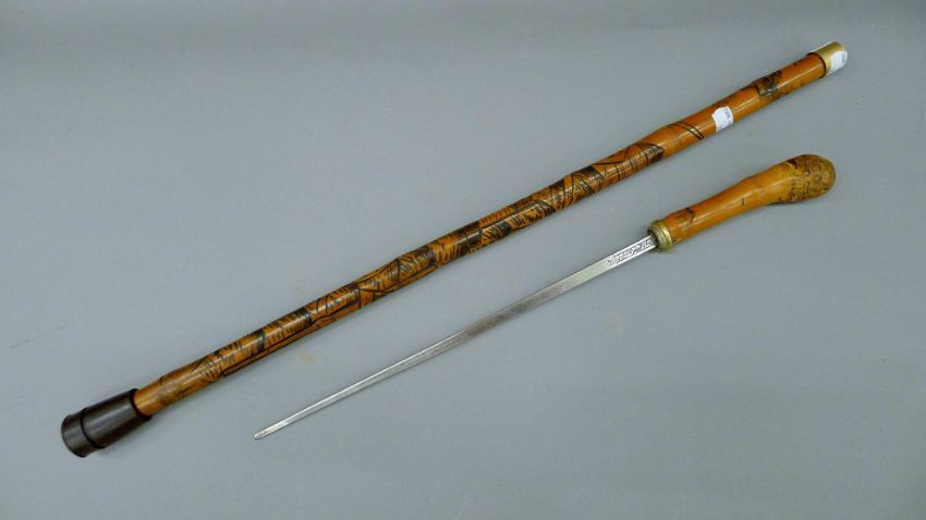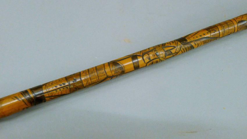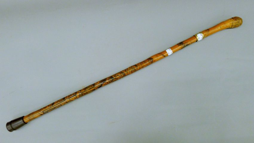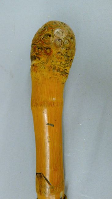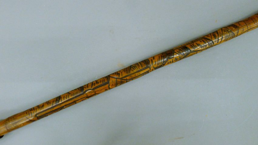 A Japanese carved bamboo sword stick (with broken blade). 84 cm high.