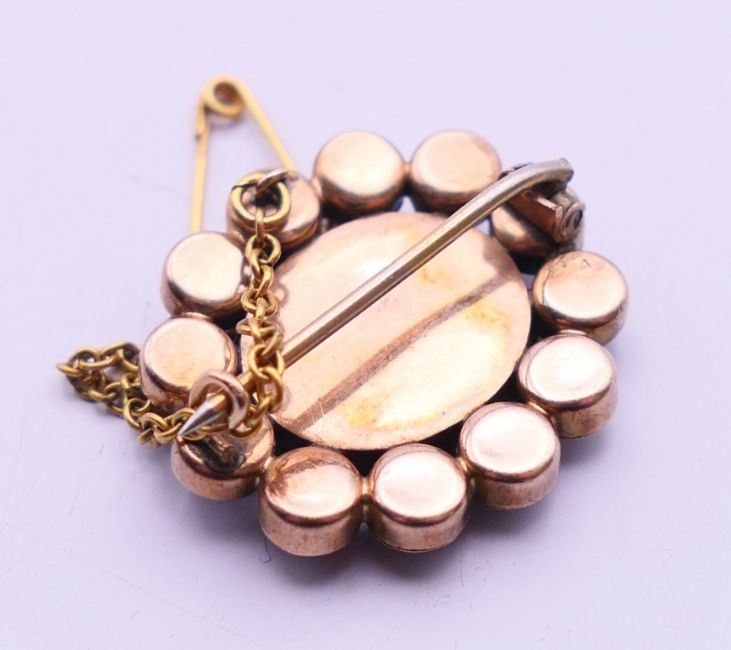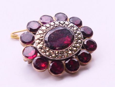 A garnet and marcasite brooch. 2.5 cm x 2 cm.