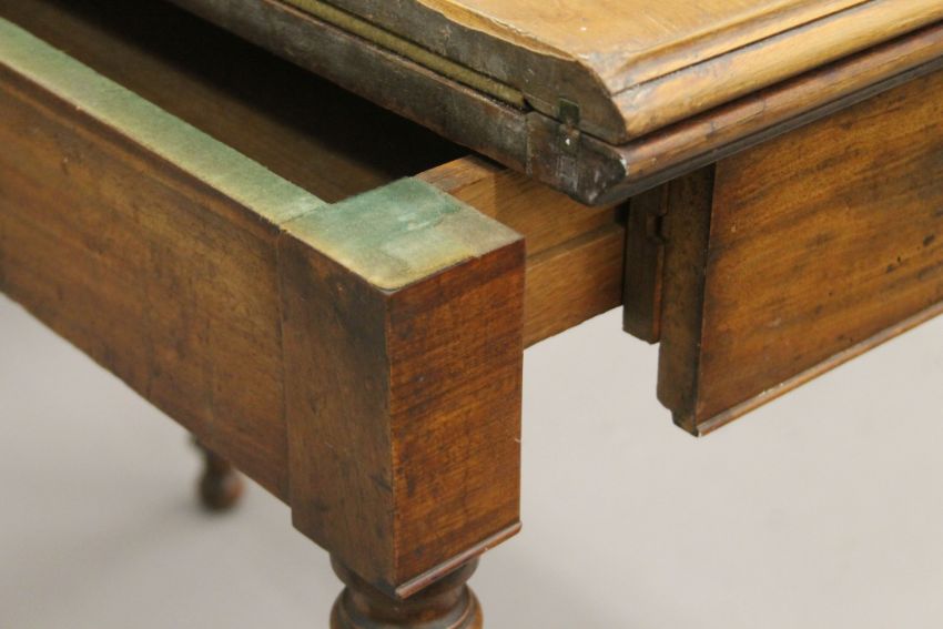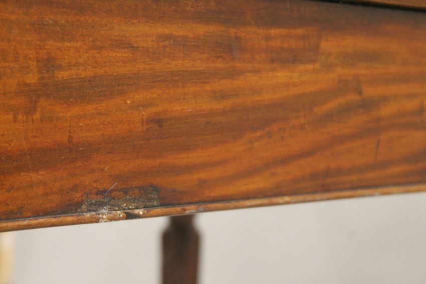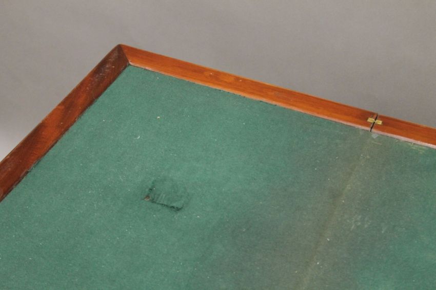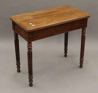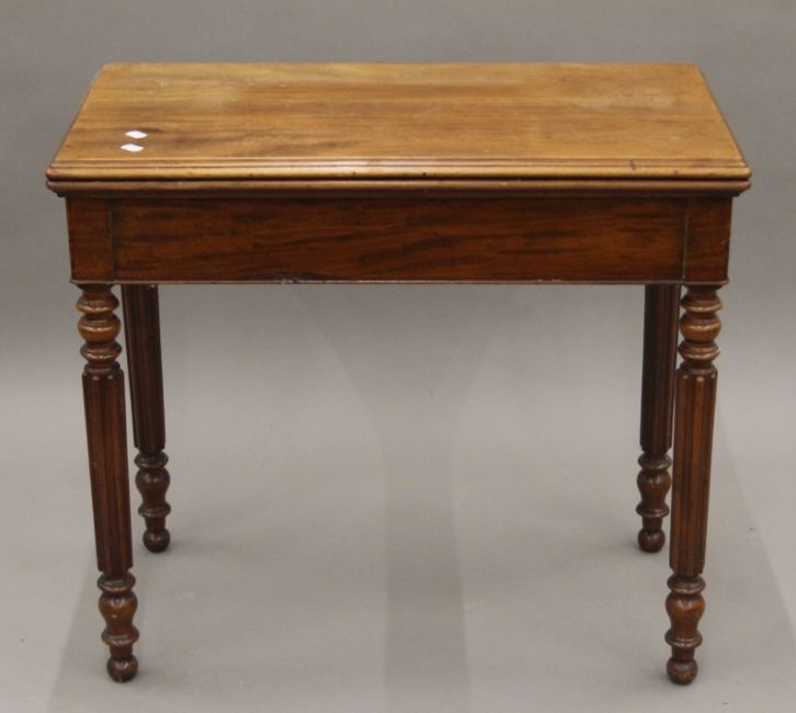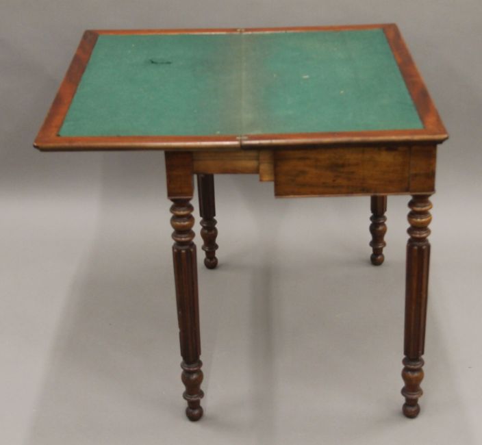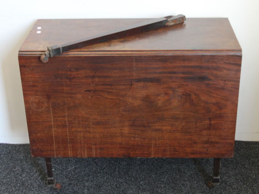 A 19th century mahogany card table and a mahogany drop-leaf table. The former 82 cm wide.