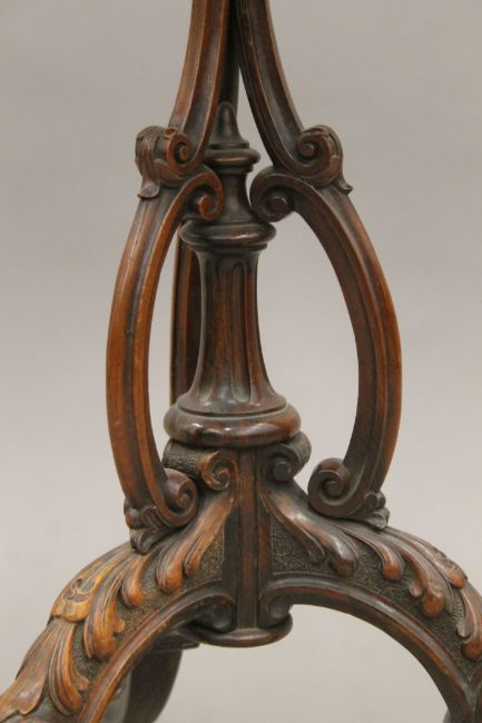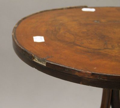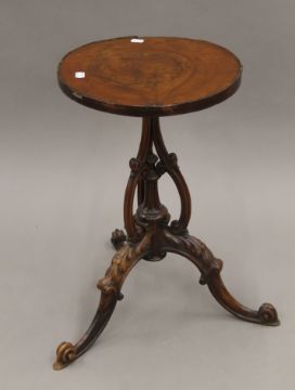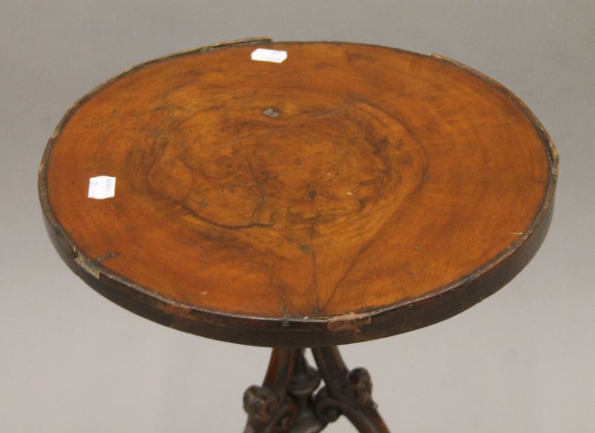 A Victorian walnut tripod side table. 34 cm diameter.