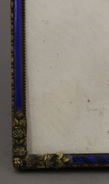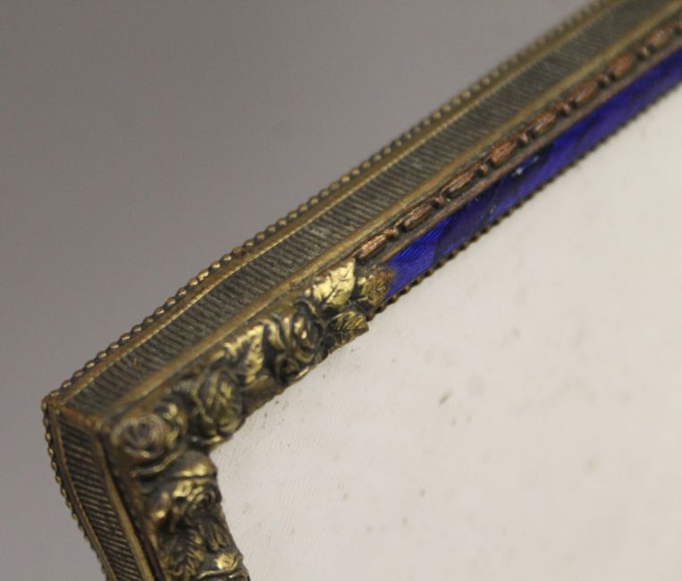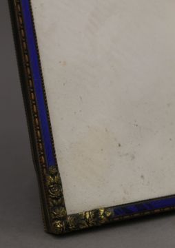 A late 19th/early 20th century blue enamel decorated picture frame. 26 x 36 cm.