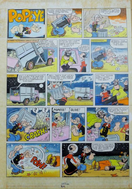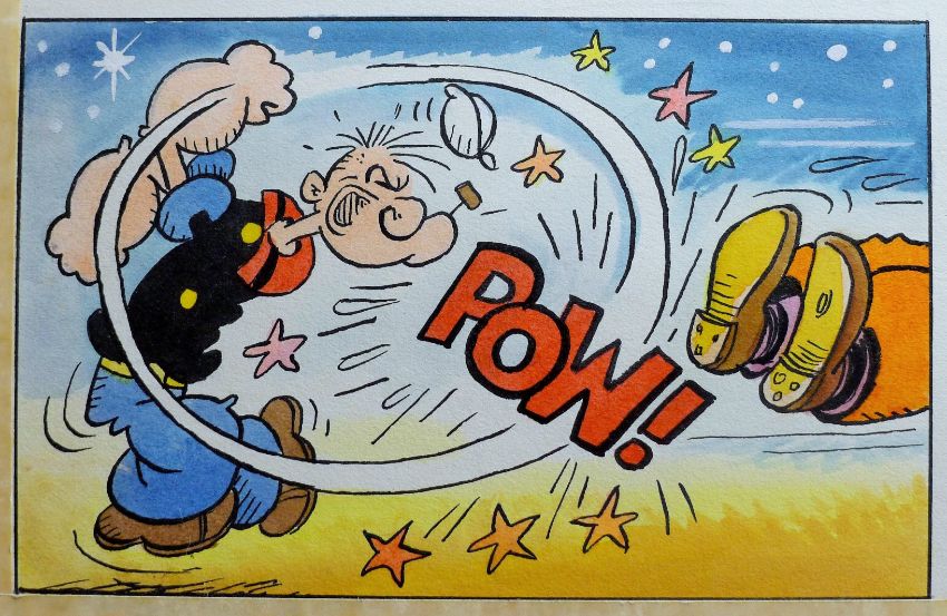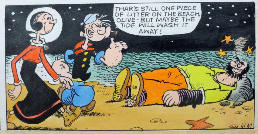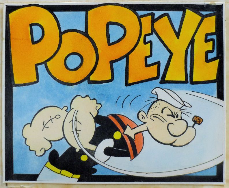 POPEYE, a page of original artwork, pen, ink and watercolour on paper mounted on card, unframed. 48 x 34 cm.