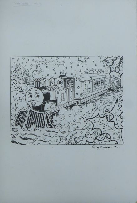 MARWOOD, TIMOTHY (1954-2009) British (AR), "Thomas the Tank Engine", original artwork, pen and ink on card, signed and dated '96, unframed. 38 cm x 28 cm overall.