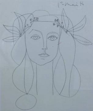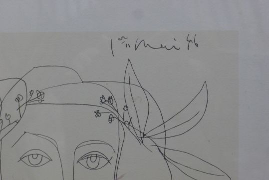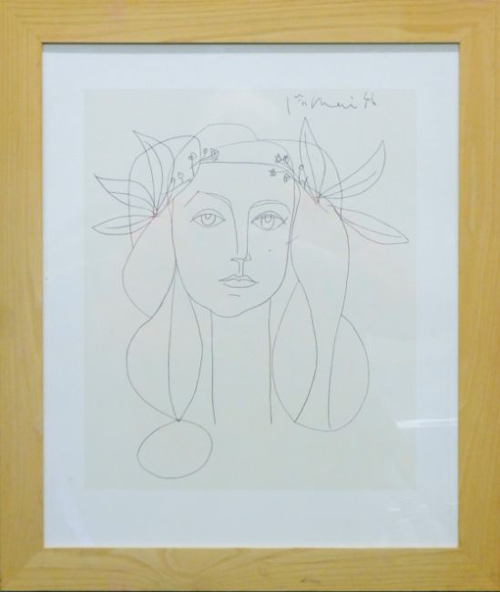 PICASSO, After PABLO (1881-1973) Spanish, a giclee print of a "Young Lady with Flowers in her Hair" bearing a blind stamp, framed and glazed. 41 x 34 cm.