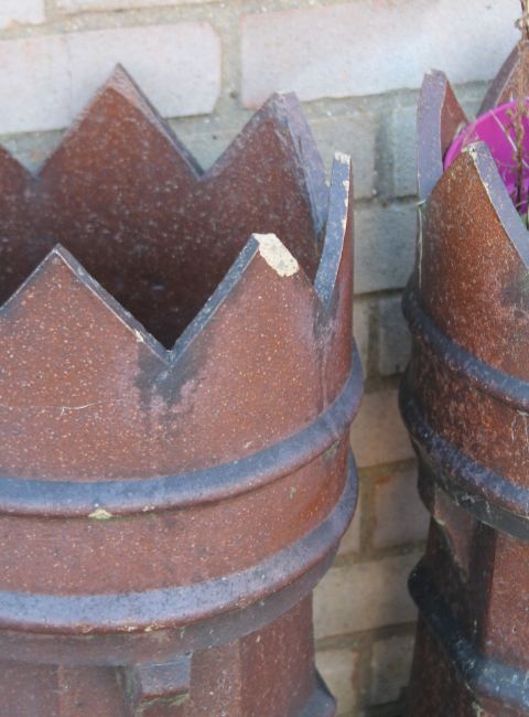 Two Victorian crown-top chimney pots. Each 76 cm high.
