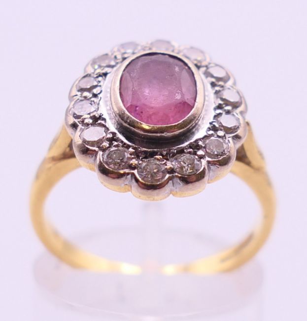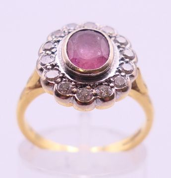 An 18 ct gold and diamond flower head ring. Ring size N.