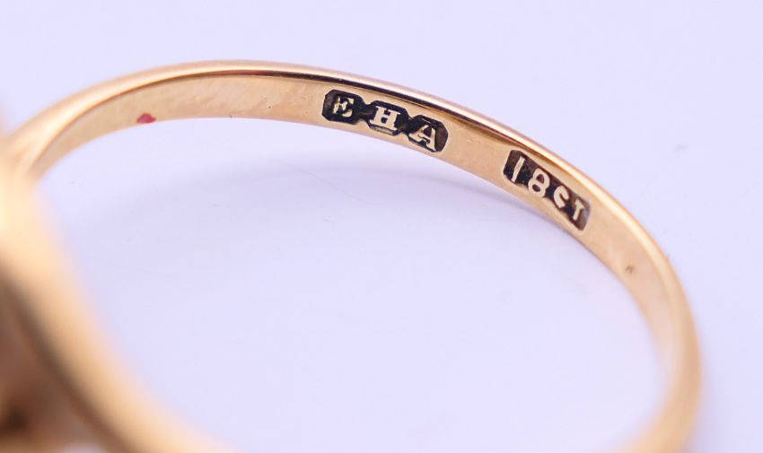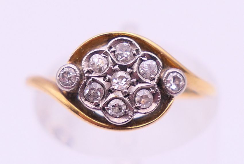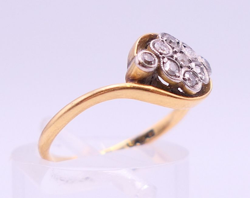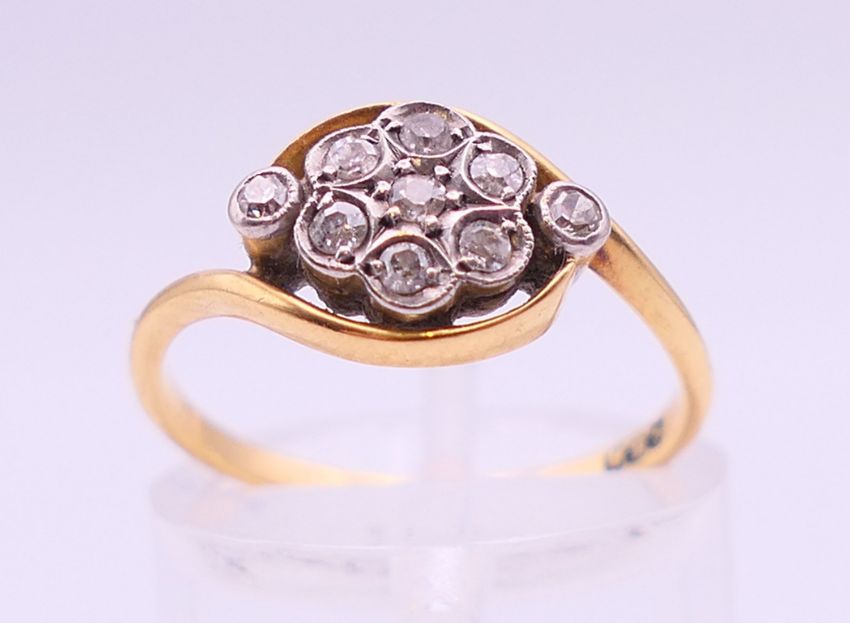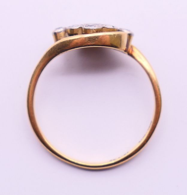 An 18 ct gold and diamond ring. Ring size L.