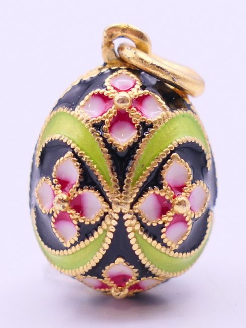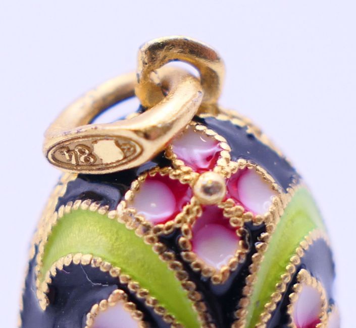 A silver and enamel pendant formed as an egg. 2 cm high.