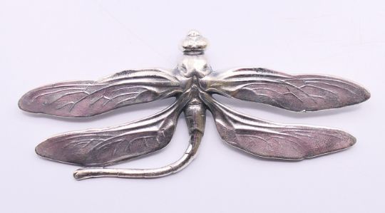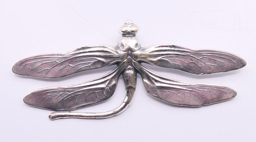 A silver dragonfly brooch. 9.5 cm x 4 cm.