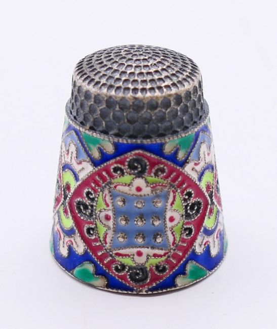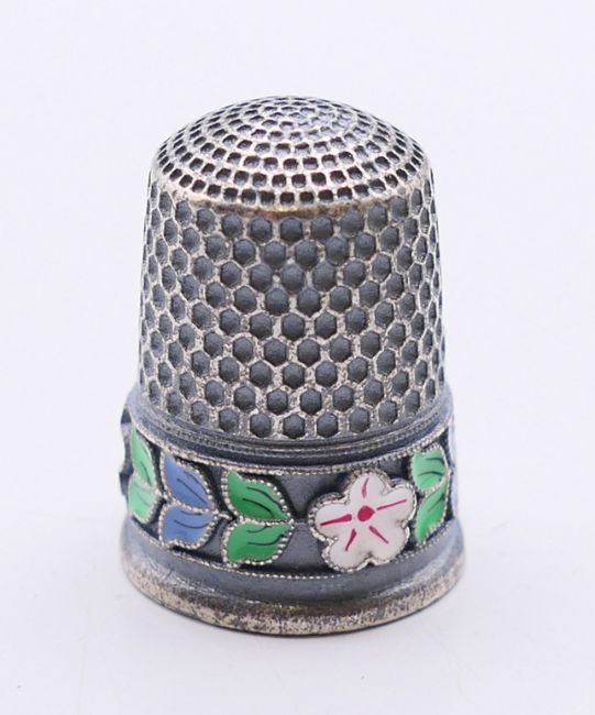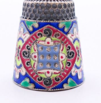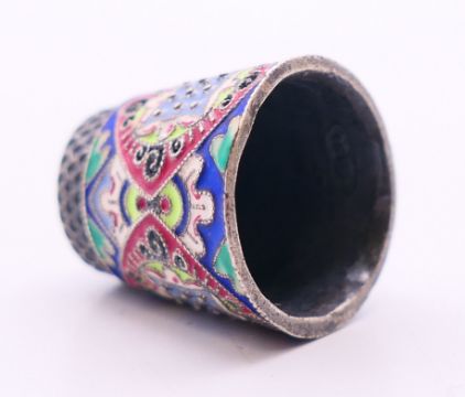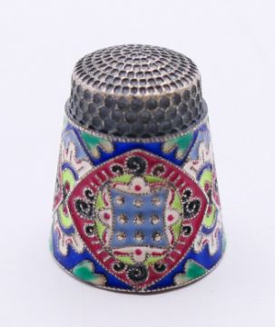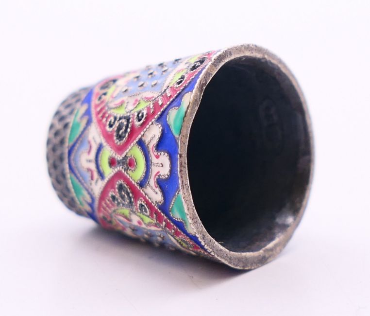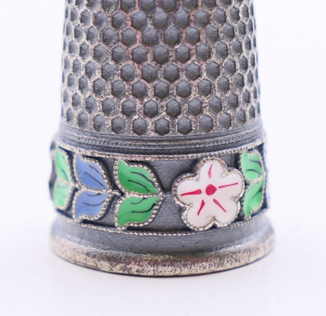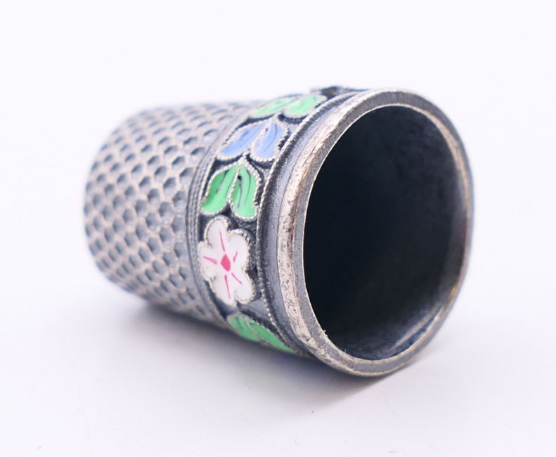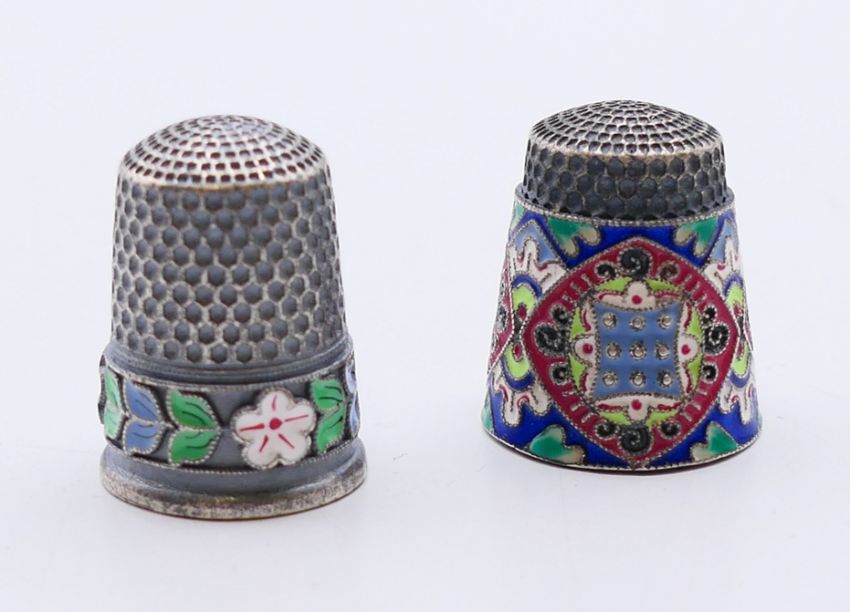 Two silver and enamel thimbles. Each 2.25 cm high.