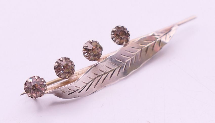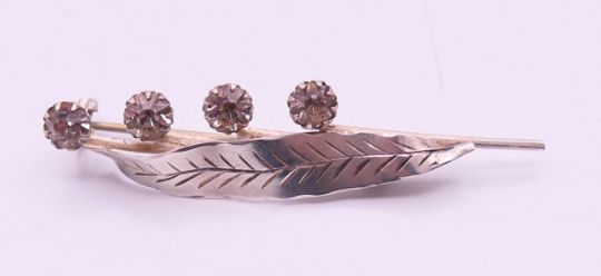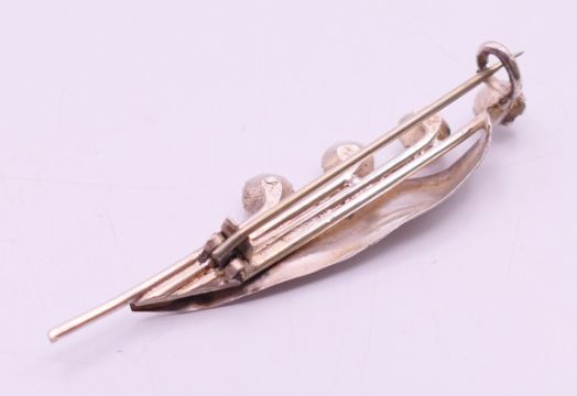A silver leaf brooch. 5 cm long.
