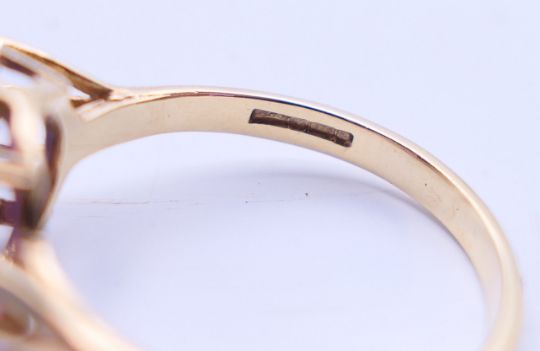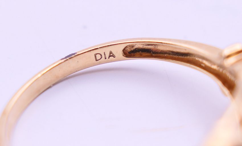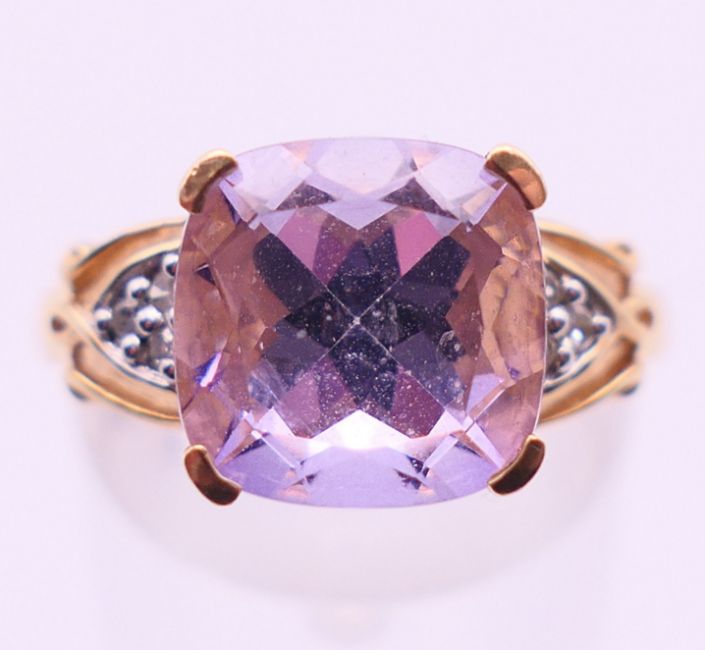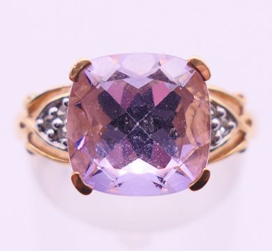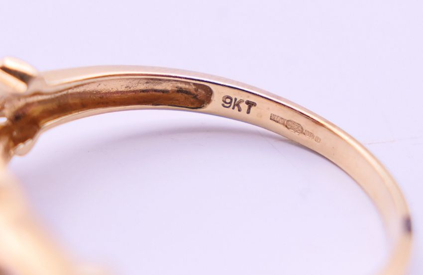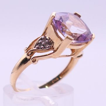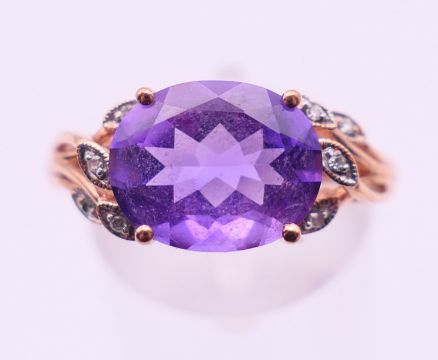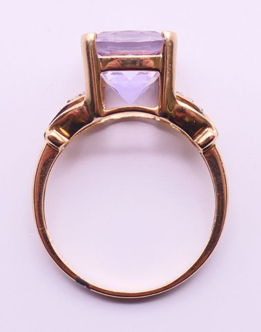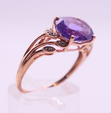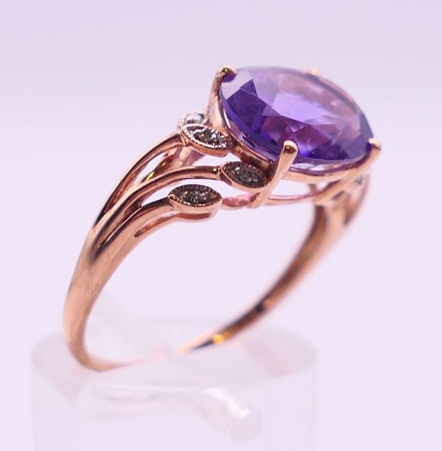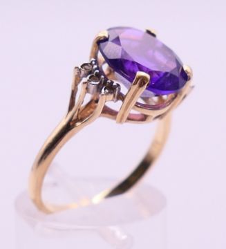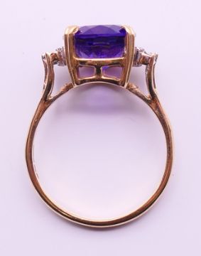 Four 9 ct gold diamond and amethyst rings. 12.5 grammes total weight.