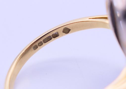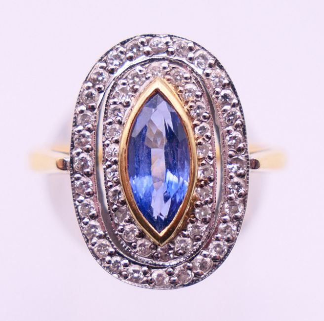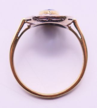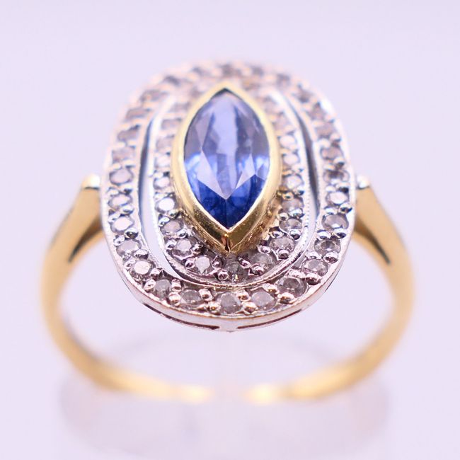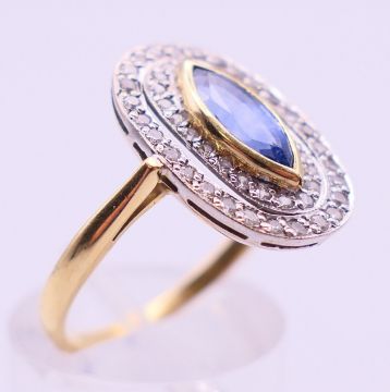 An 18 ct gold, diamond and sapphire ring. Ring size P/Q.