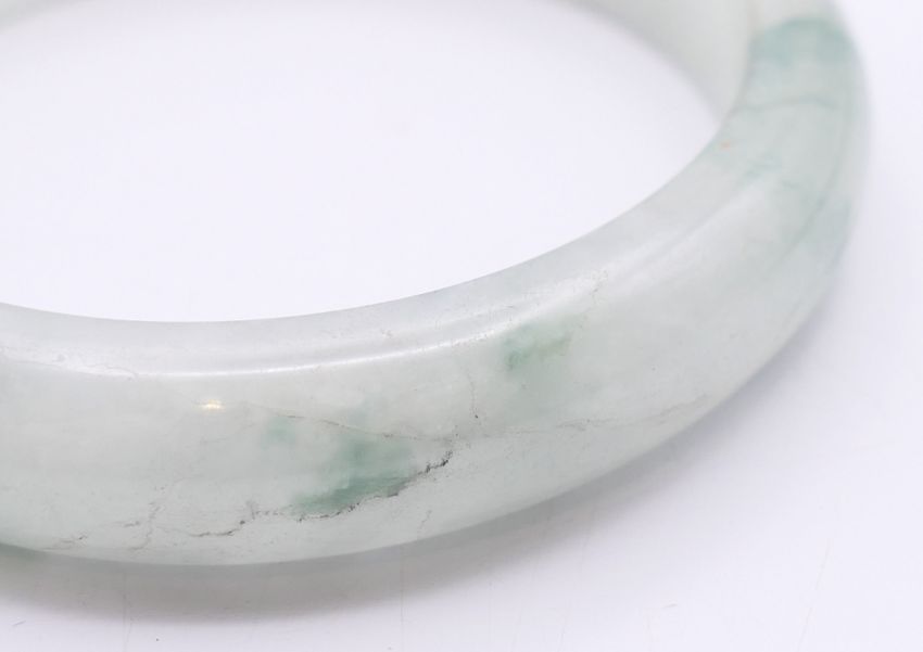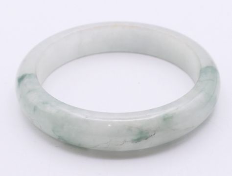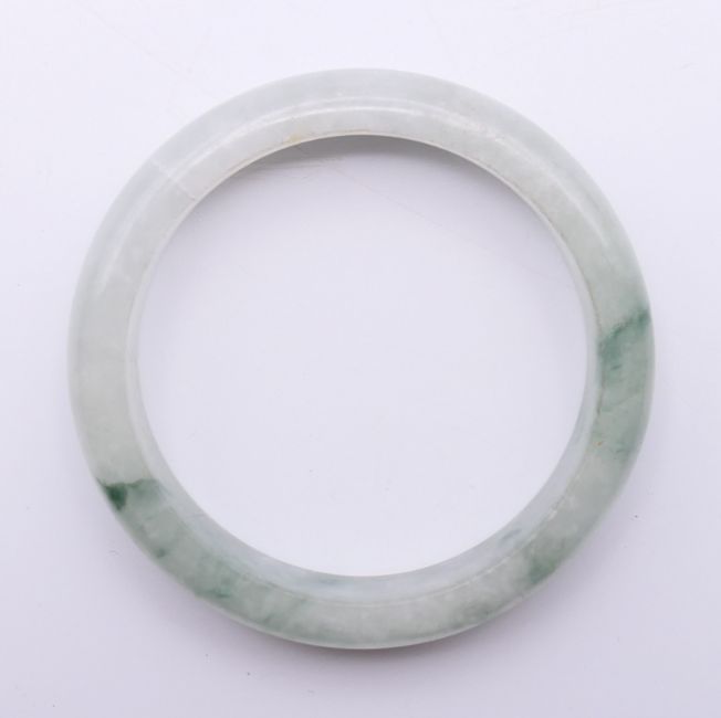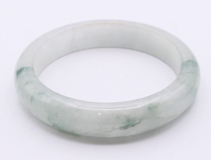 A celadon jade bangle. 5.75 cm internal diameter, 0.75 cm wide.
