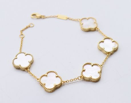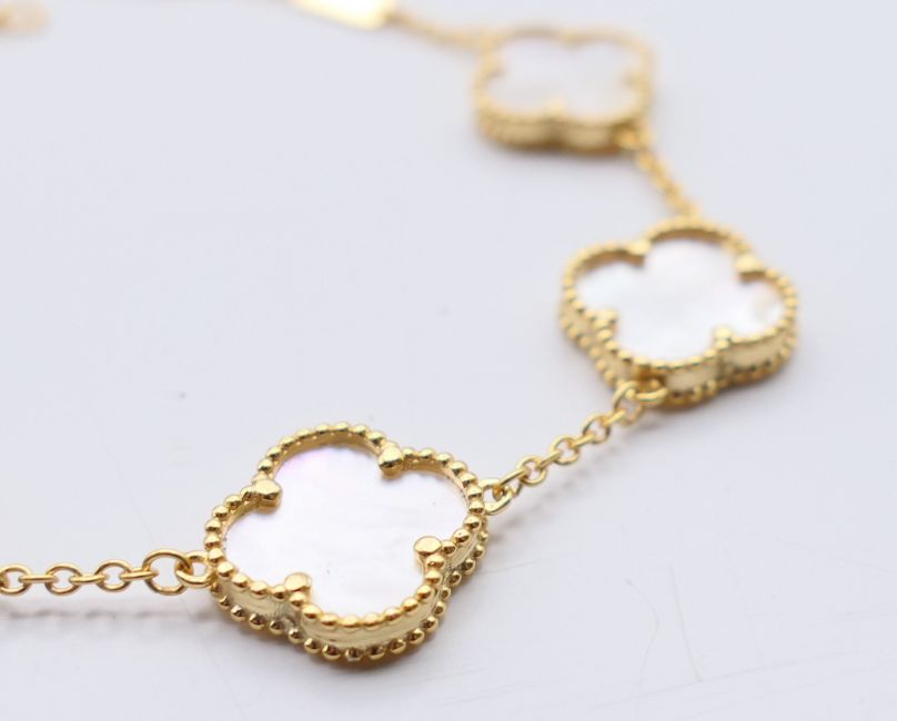 A silver gilt and mother-of-pearl clover bracelet. 18 cm long.