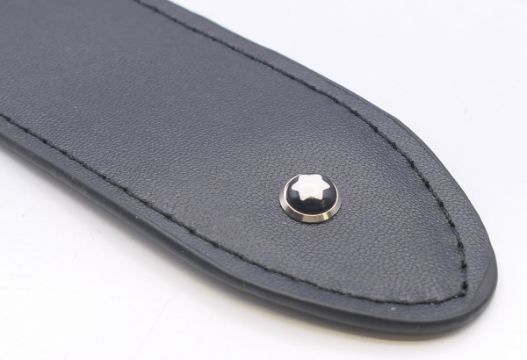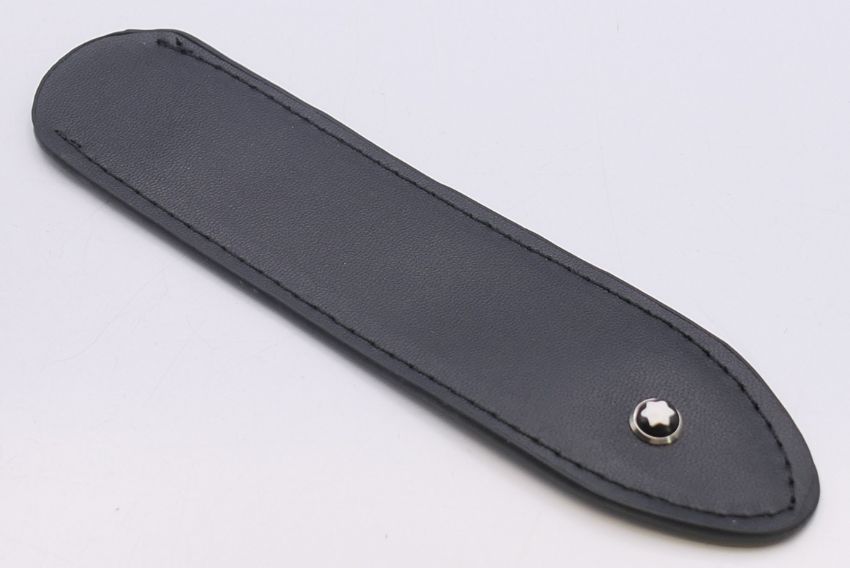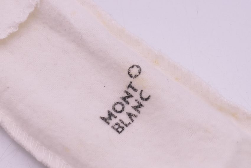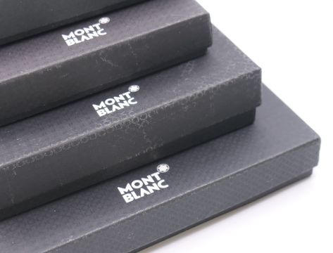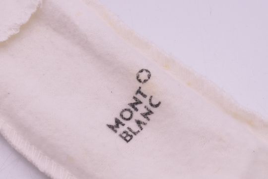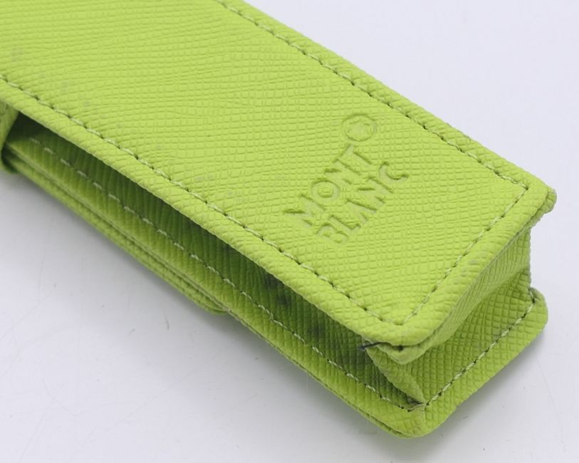 Two 'Mont Blanc' pen cases and four vacant Mont Blanc boxes. Green 'Mont Blanc' pen case 16.5 cm high.