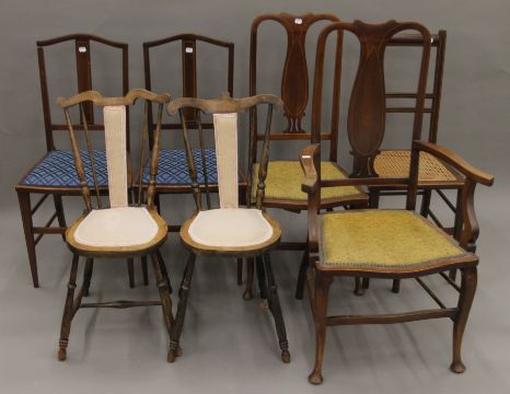 A quantity of Edwardian chairs. The largest 58 cm wide.