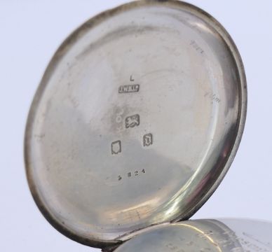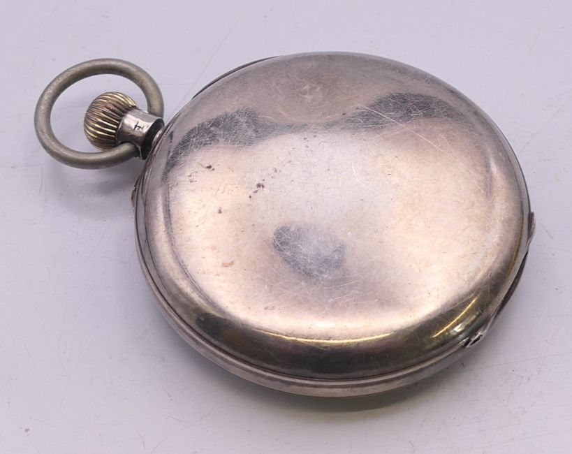 A J W Benson silver pocket watch. 5.25 cm diameter.