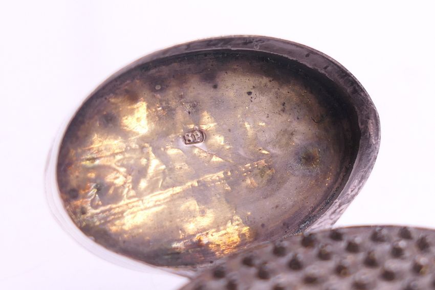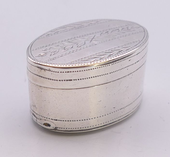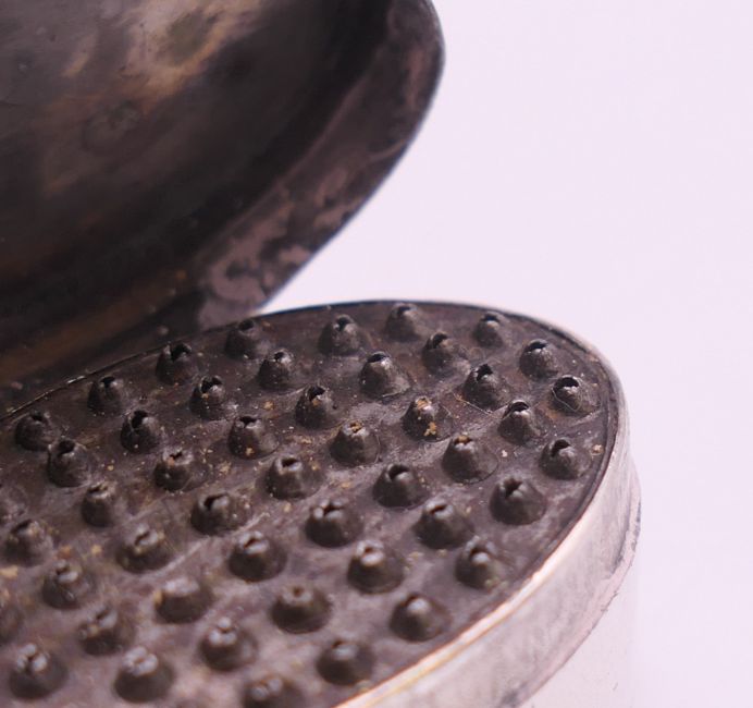 A Georgian silver oval nutmeg grater. 2 cm high.