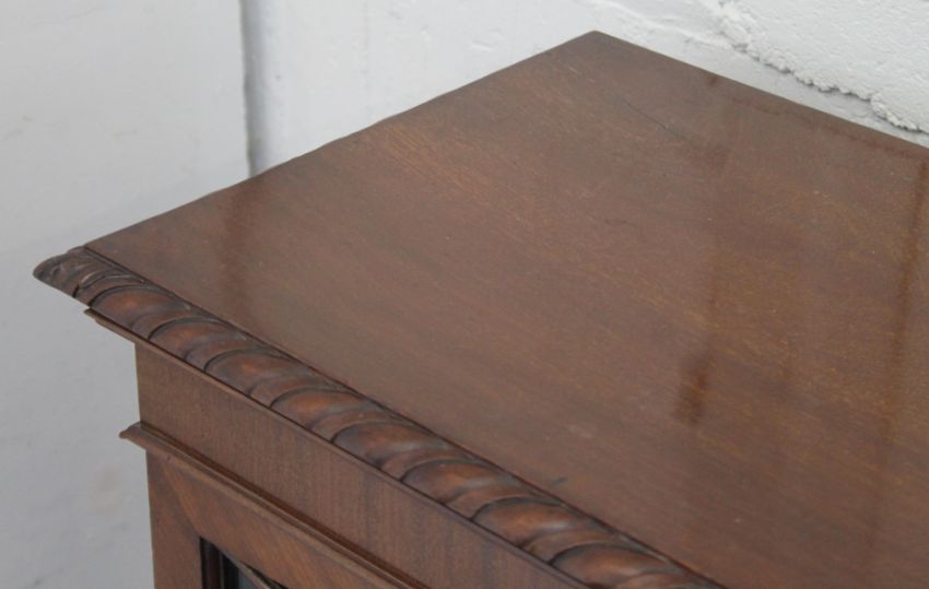 An Edwardian mahogany glazed display cabinet. 182 cm wide x 115 cm high.