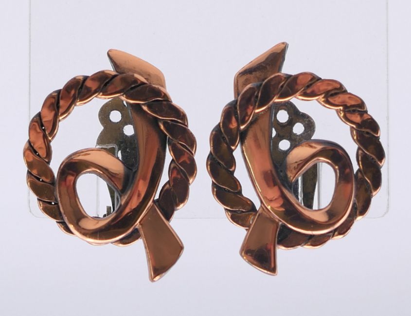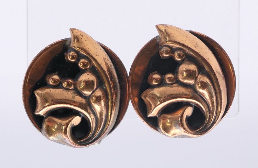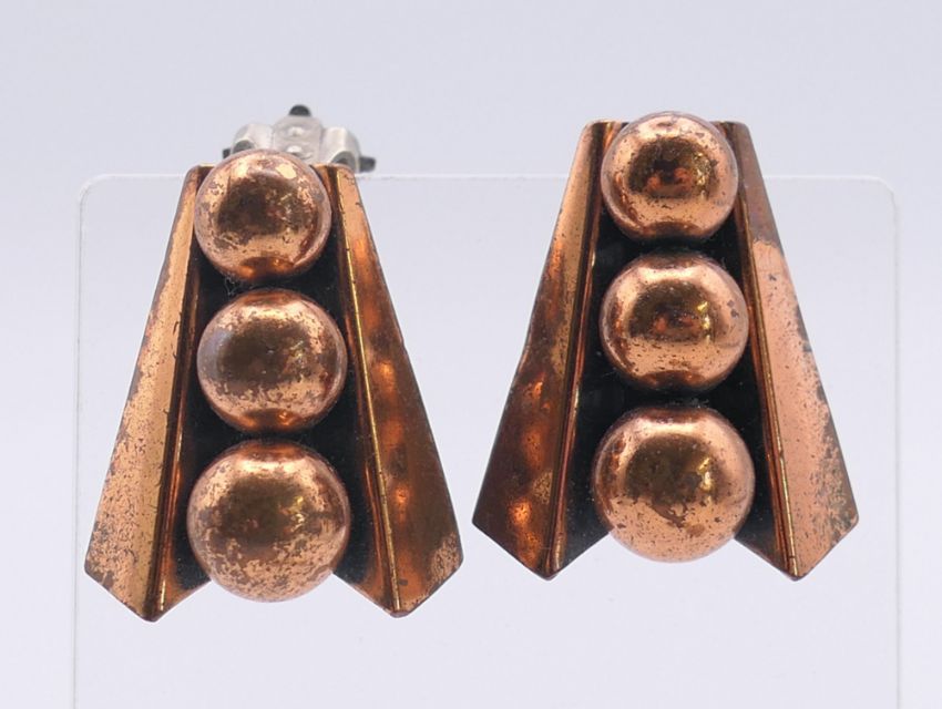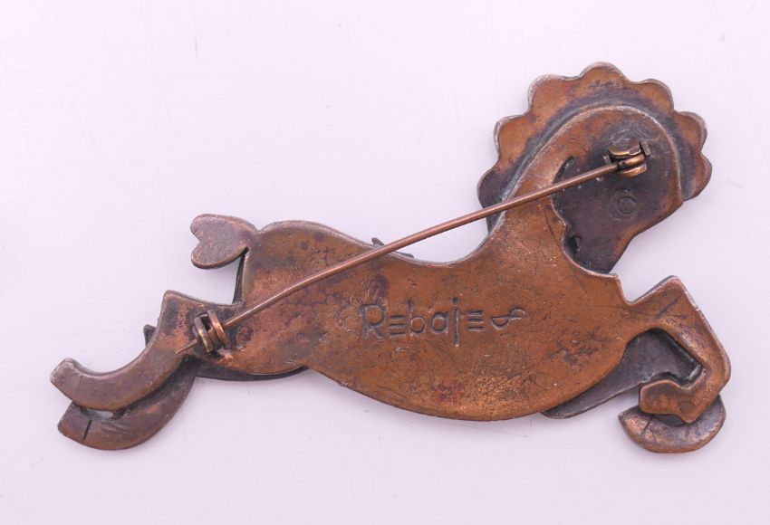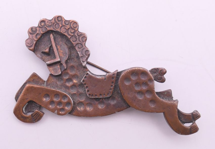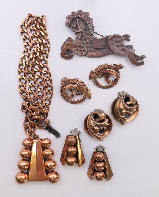 A collection of Renoir jewellery (a necklace and matching earrings and two pairs of earrings) and a Francisco Rebajes copper horse brooch. Horse brooch 7 cm x 4 cm.