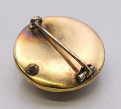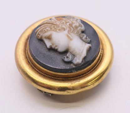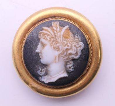 A 19th century unmarked cameo brooch. 2.5 cm diameter. 7 grammes total weight.