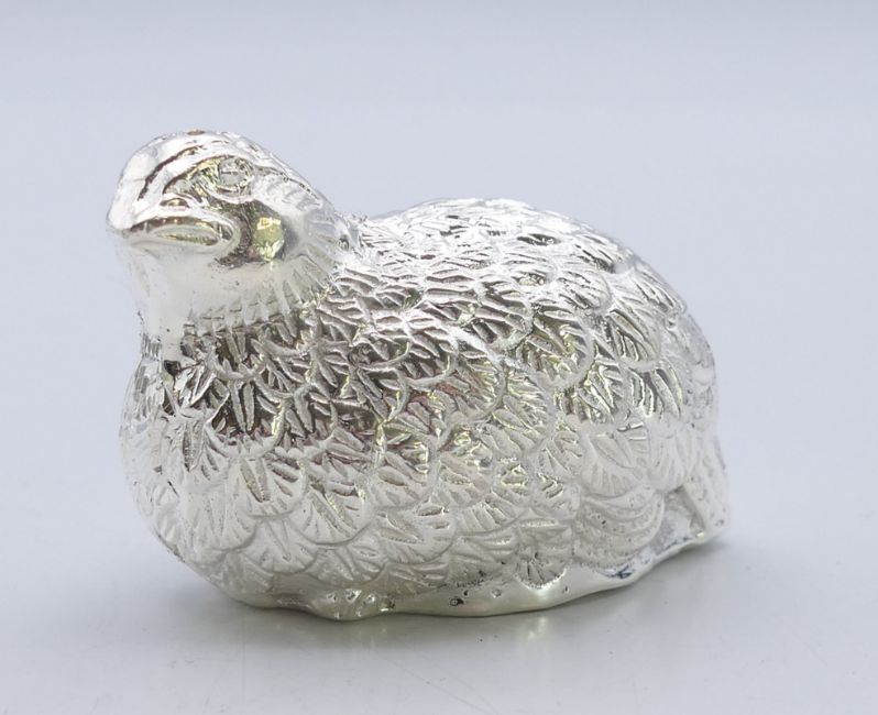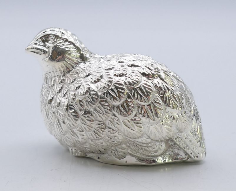 A pair of silver-plated salt and pepper in the form of birds/partridges. 4.5 cm high.